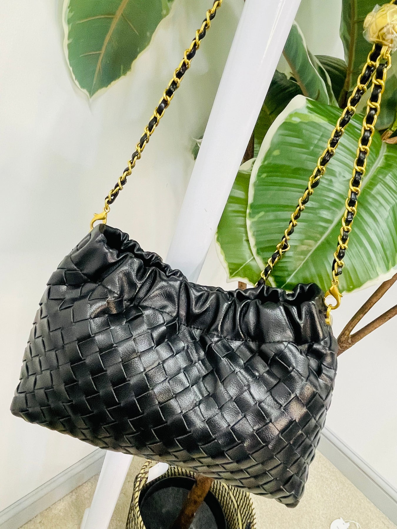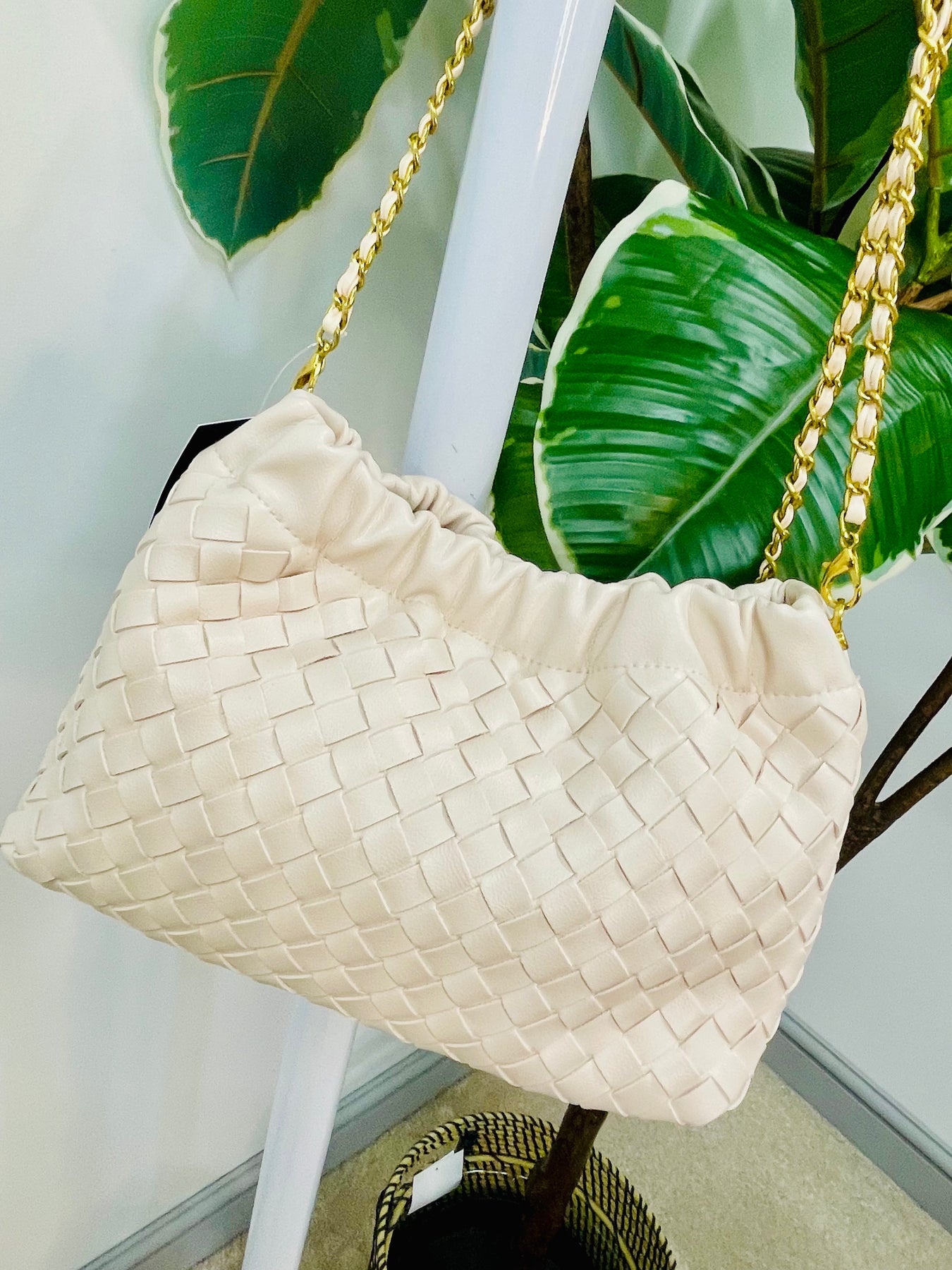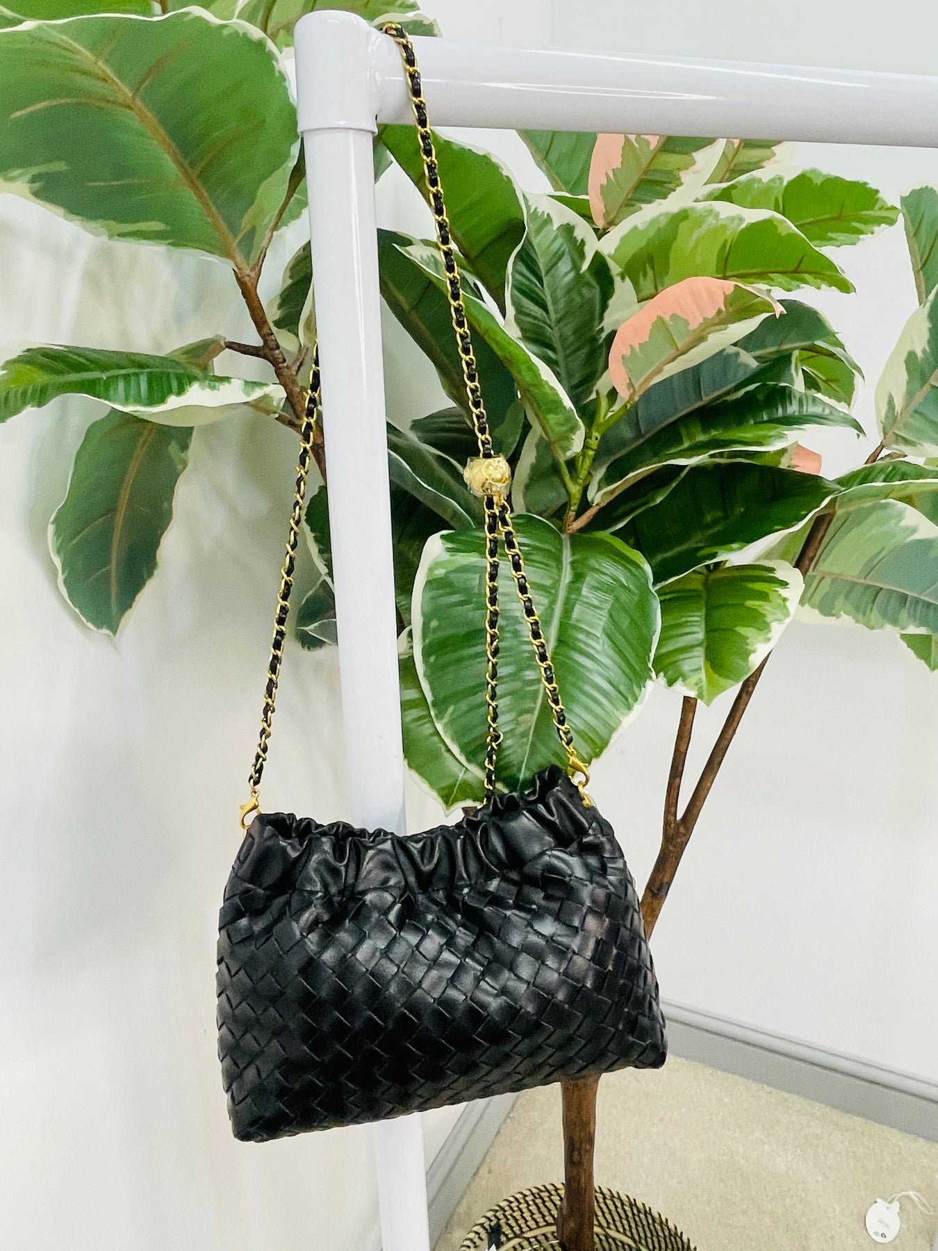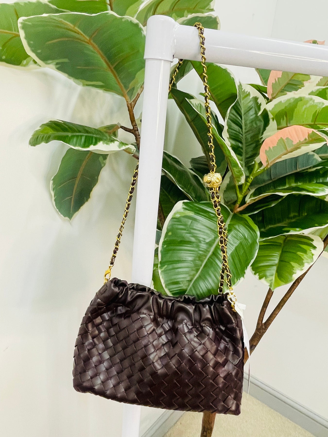 LADIES DESIGNER INSPIRED WOVEN HAND BAG - BLACK, WINE, BROWN, BEIGE