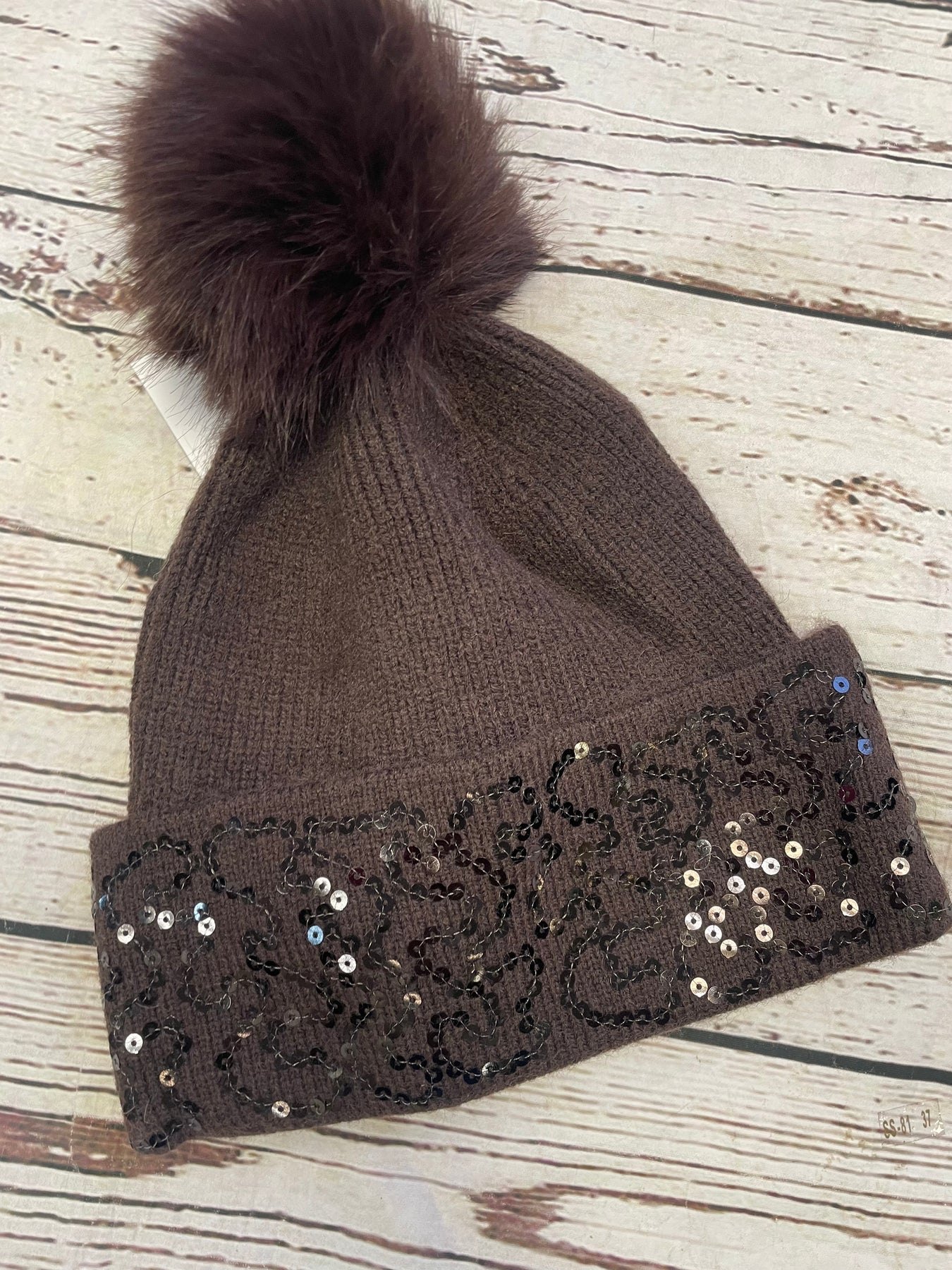 LADIES FAUX FUR DIAMANTE BOBBLE BEANIE HAT - BLACK, WINE, WHITE, BEIGE, BROWN