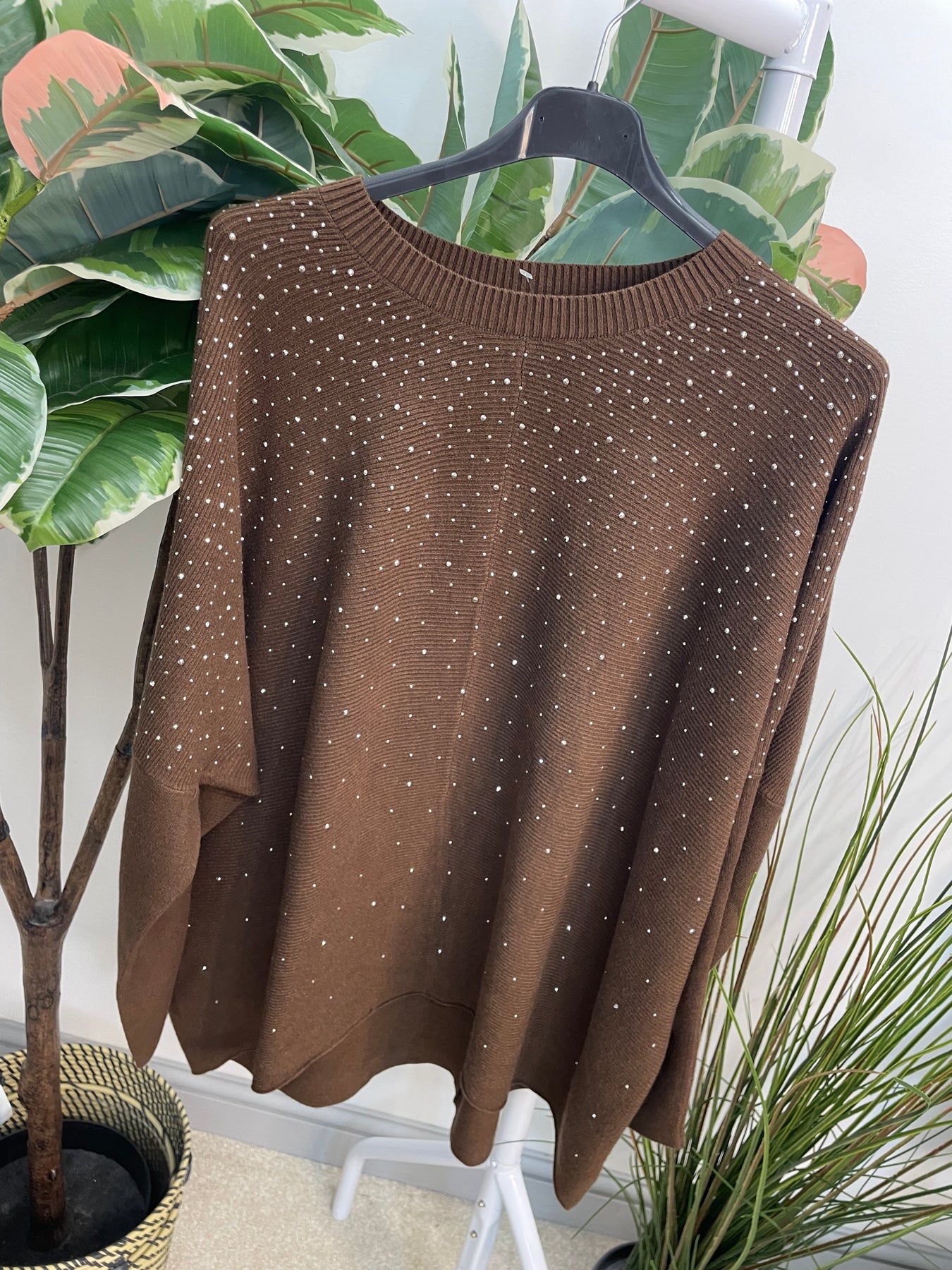 Soft rib knit oversize jumper with sparkly stud detail