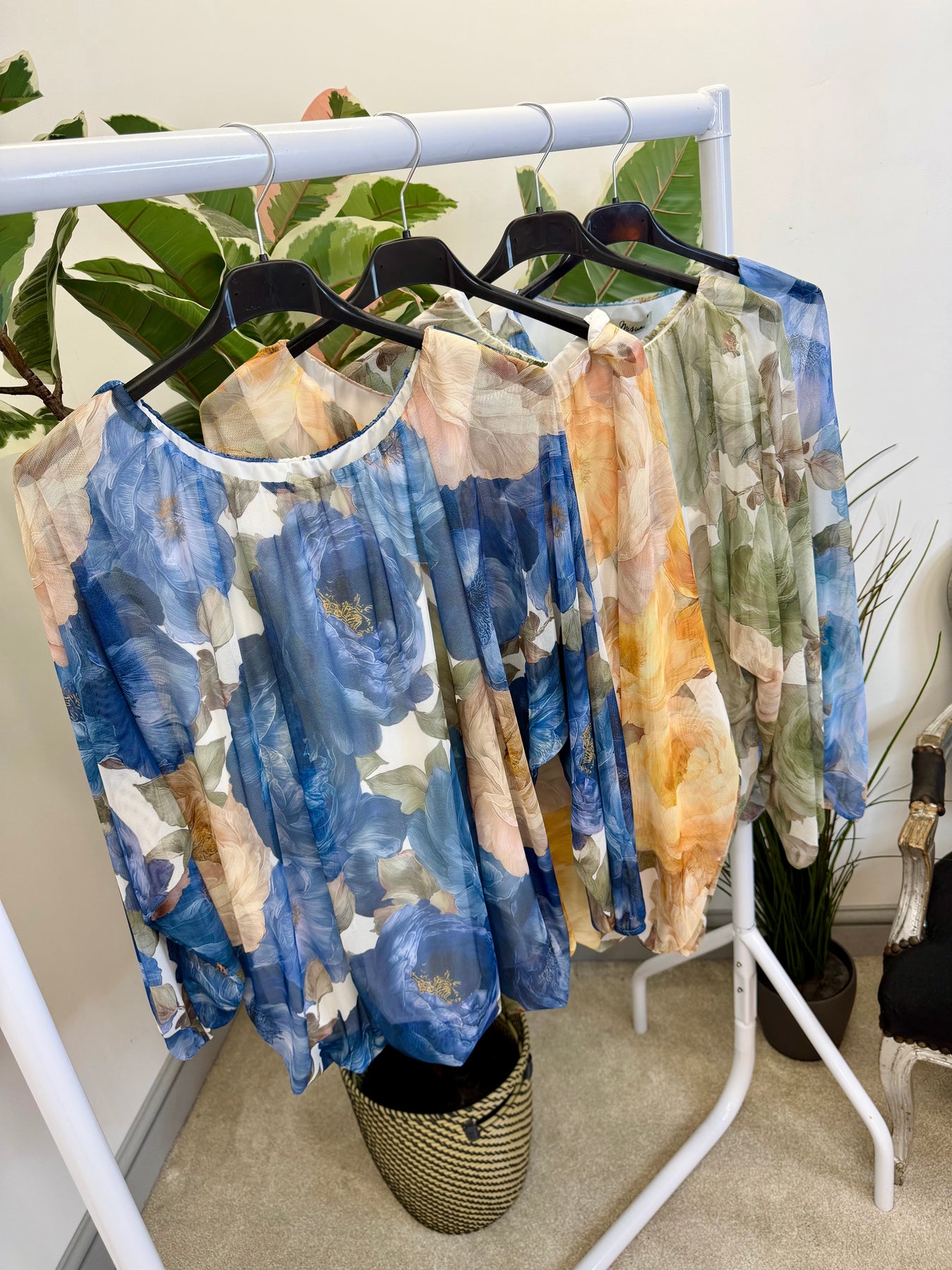 LADIES STRETCH NET BLOUSON TOP - NAVY, KHAKI, YELLOW & NAVY