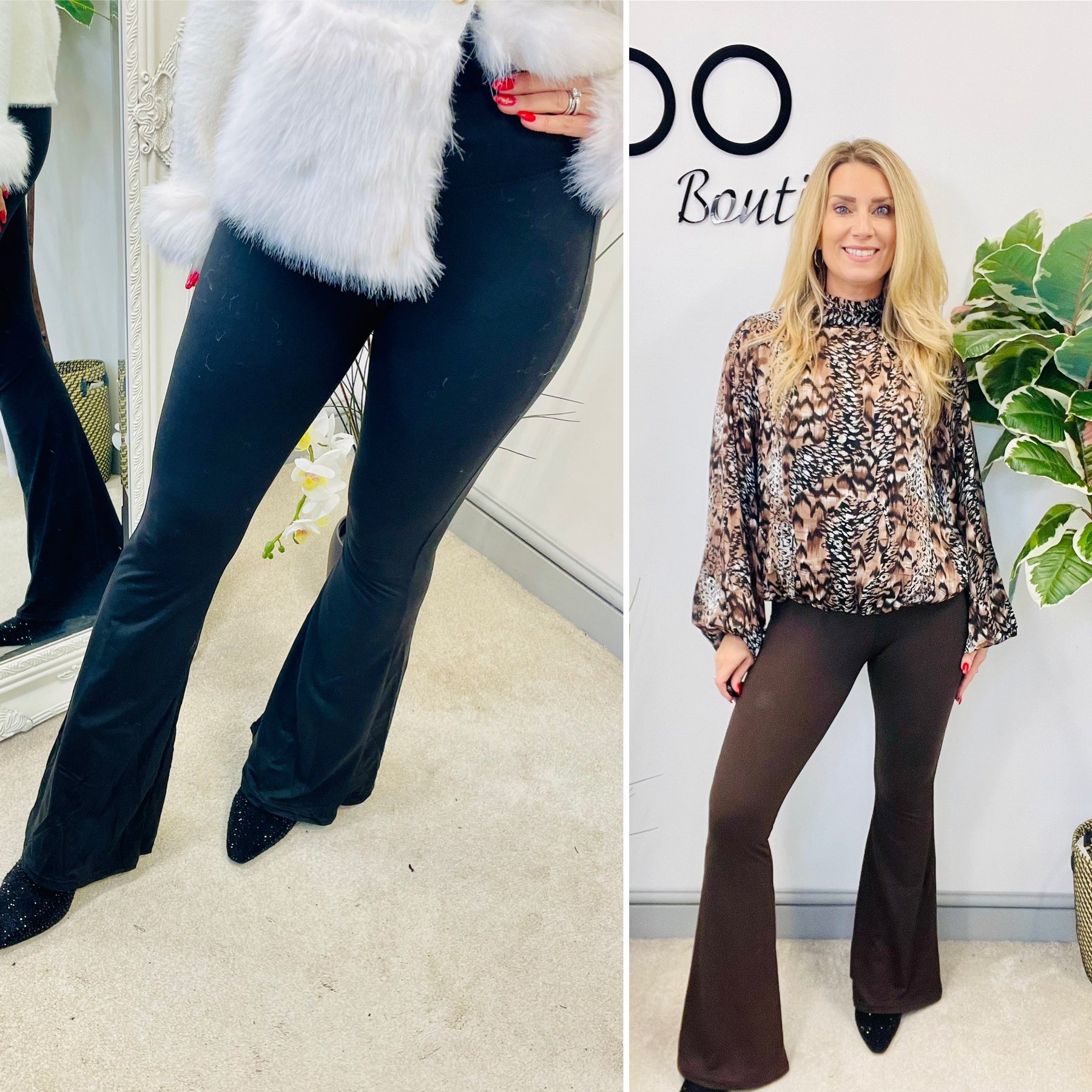 LADIES KICK FLARE LEGGINGS - BLACK & CHOCOLATE BROWN