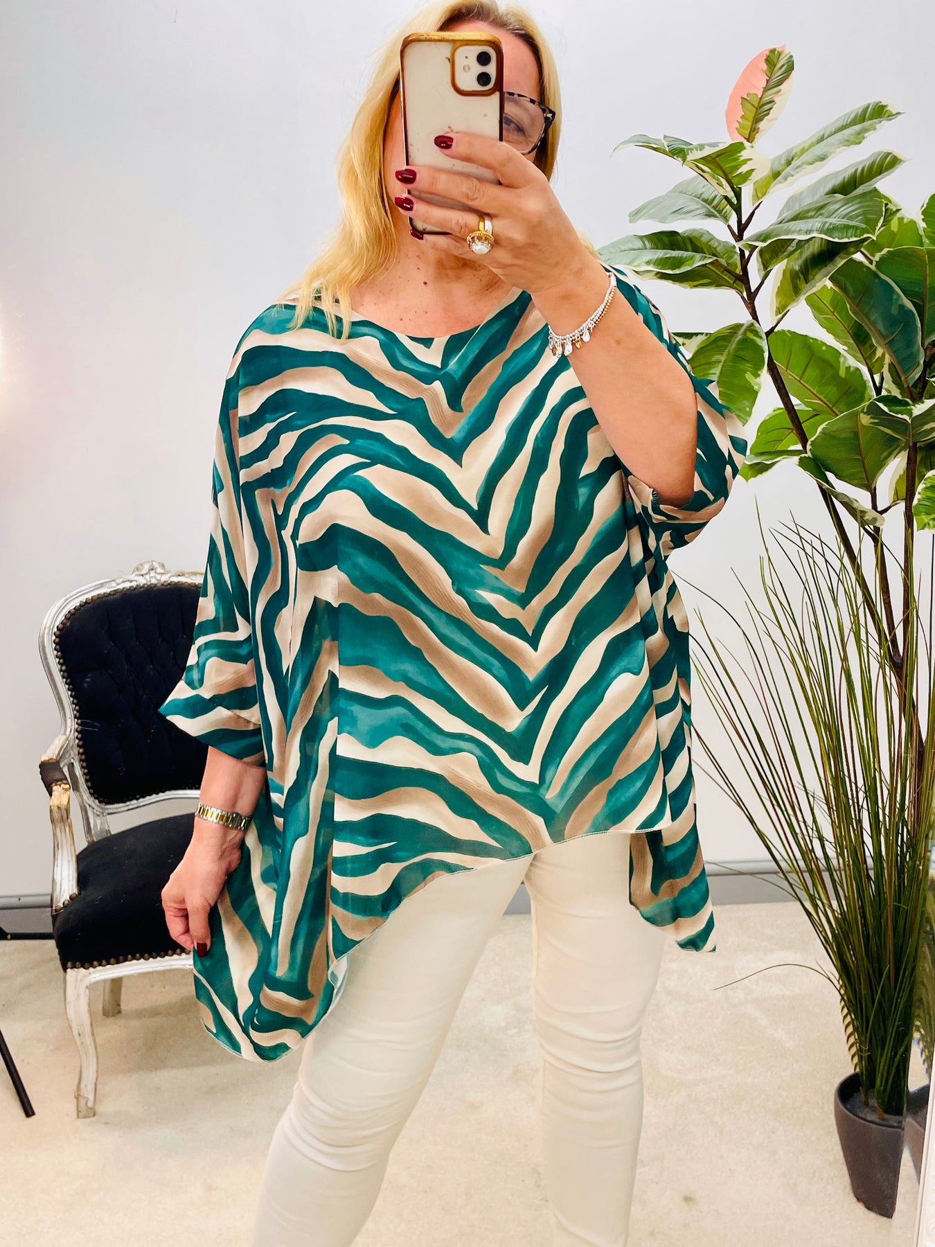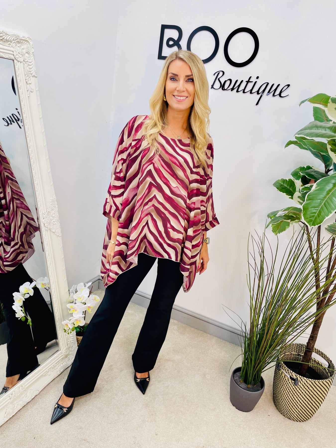 LADIES ZEBRA PRINT CHIFFON FLOATY TOP BLOUSE - GREEN, BLACK & BURGUNDY