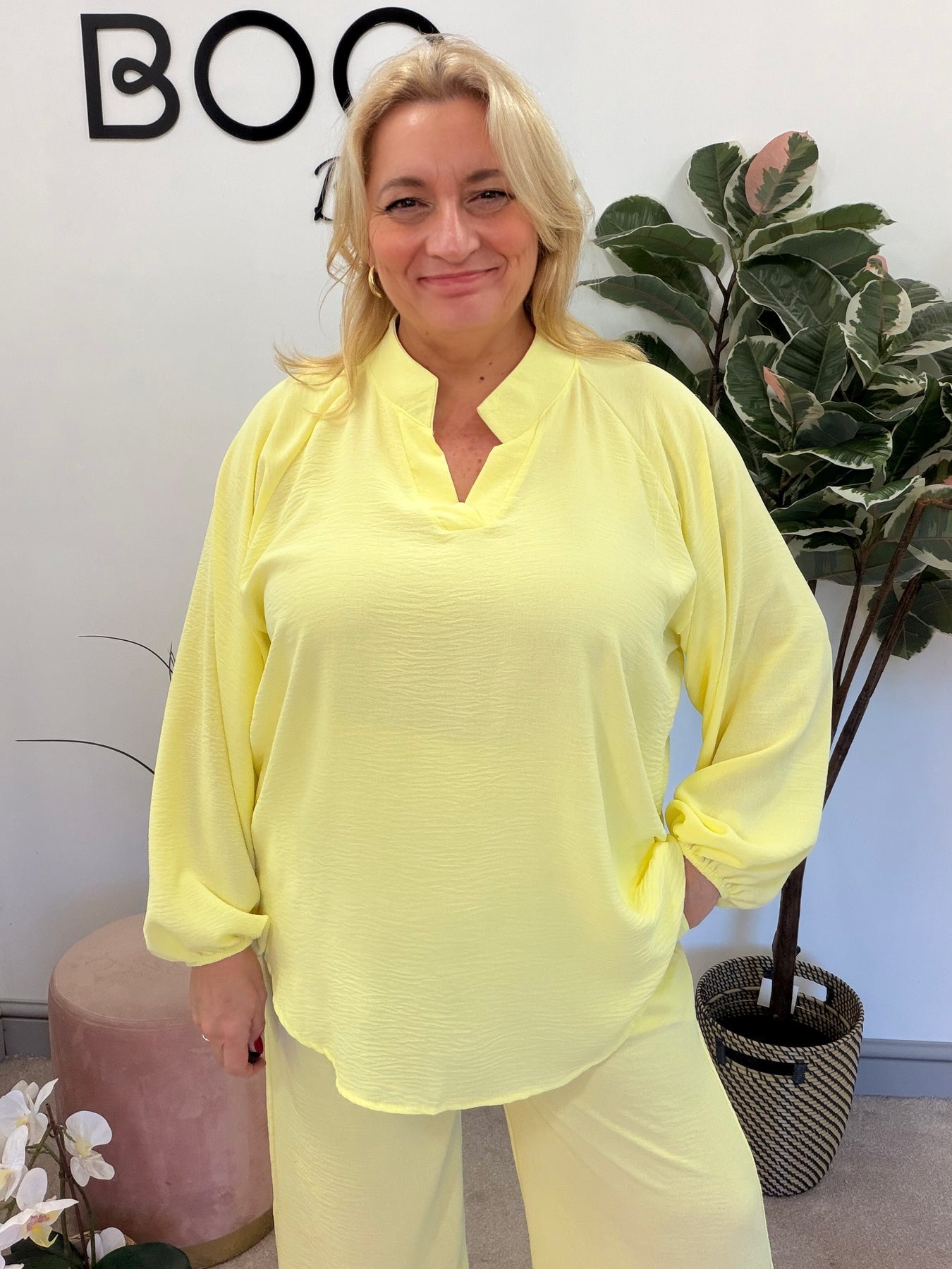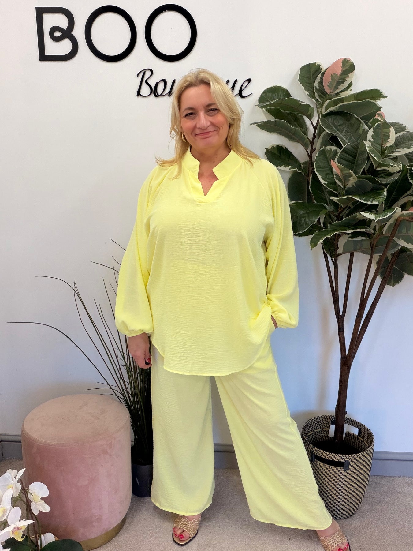 Ladies Fashion Wide Leg Trouser Co Ord Set - lemon, black, navy & beige
