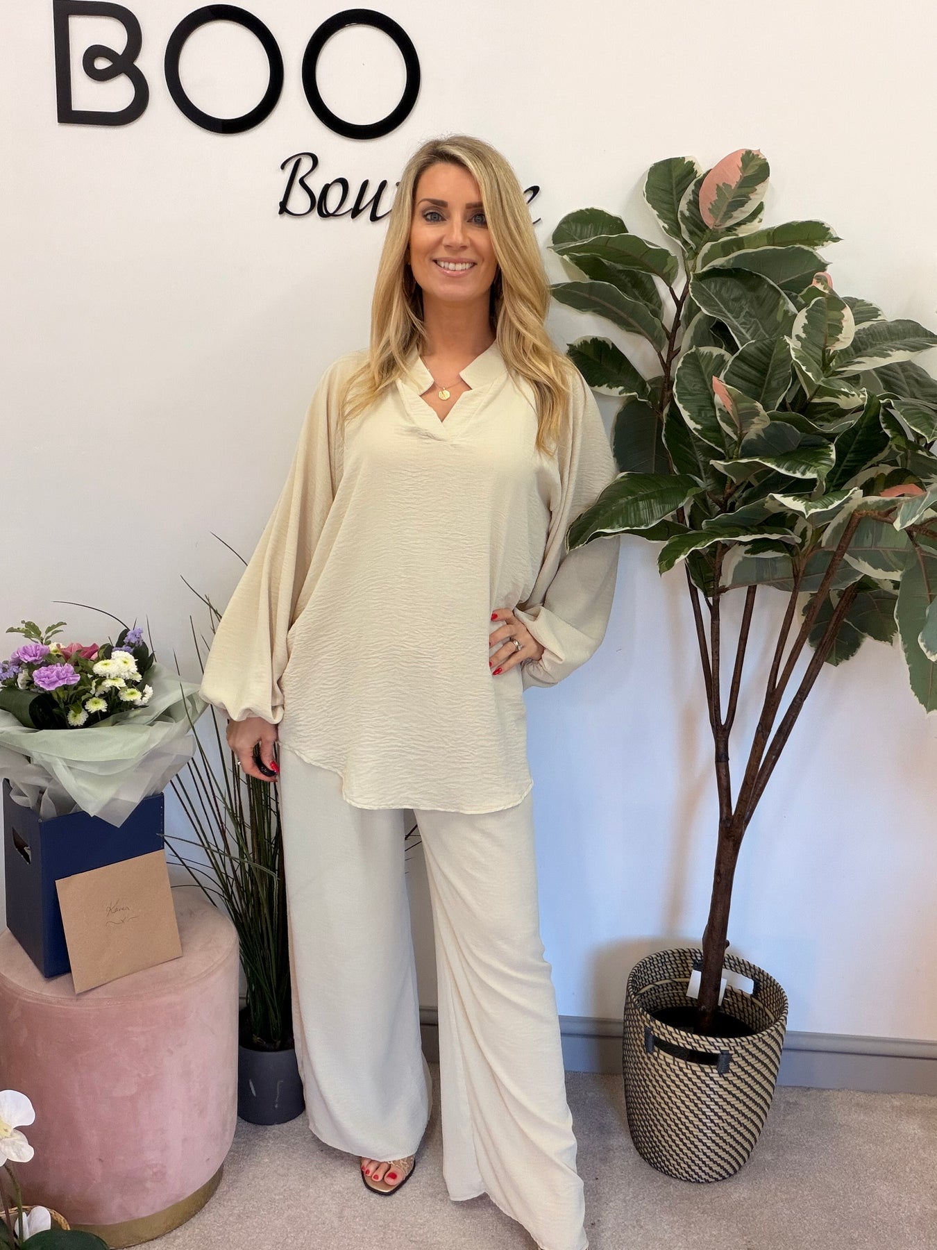 Embrace effortless style with The WILLOW trouser Co ord, available in four stunning colours. This easy-to-wear set features a loose-fit V-neck top and wide-leg trousers with a comfortable elasticated waist and handy side pockets. Perfect for any occasion, it flatters sizes 10 to 18 while ensuring you feel chic and relaxed!