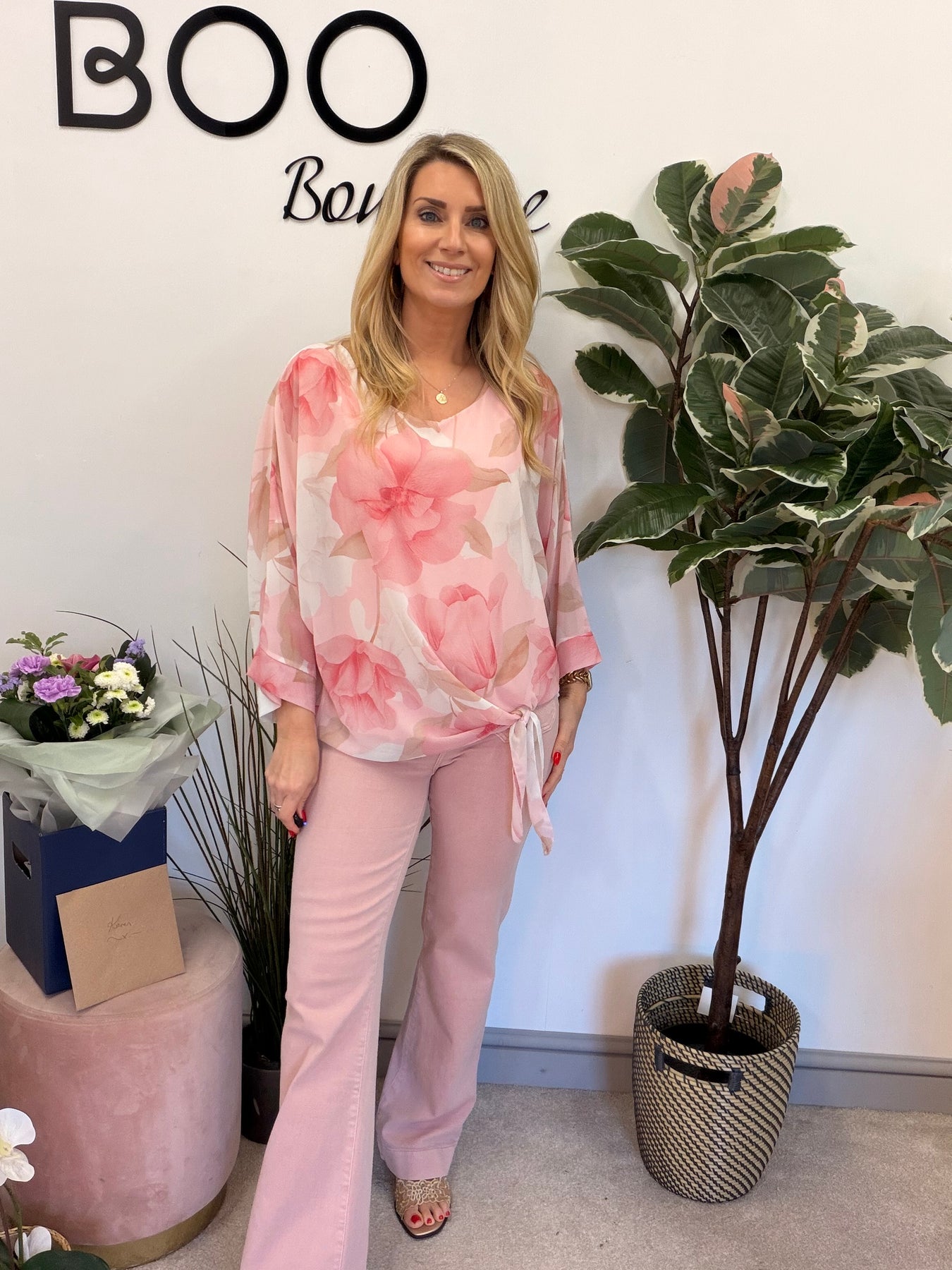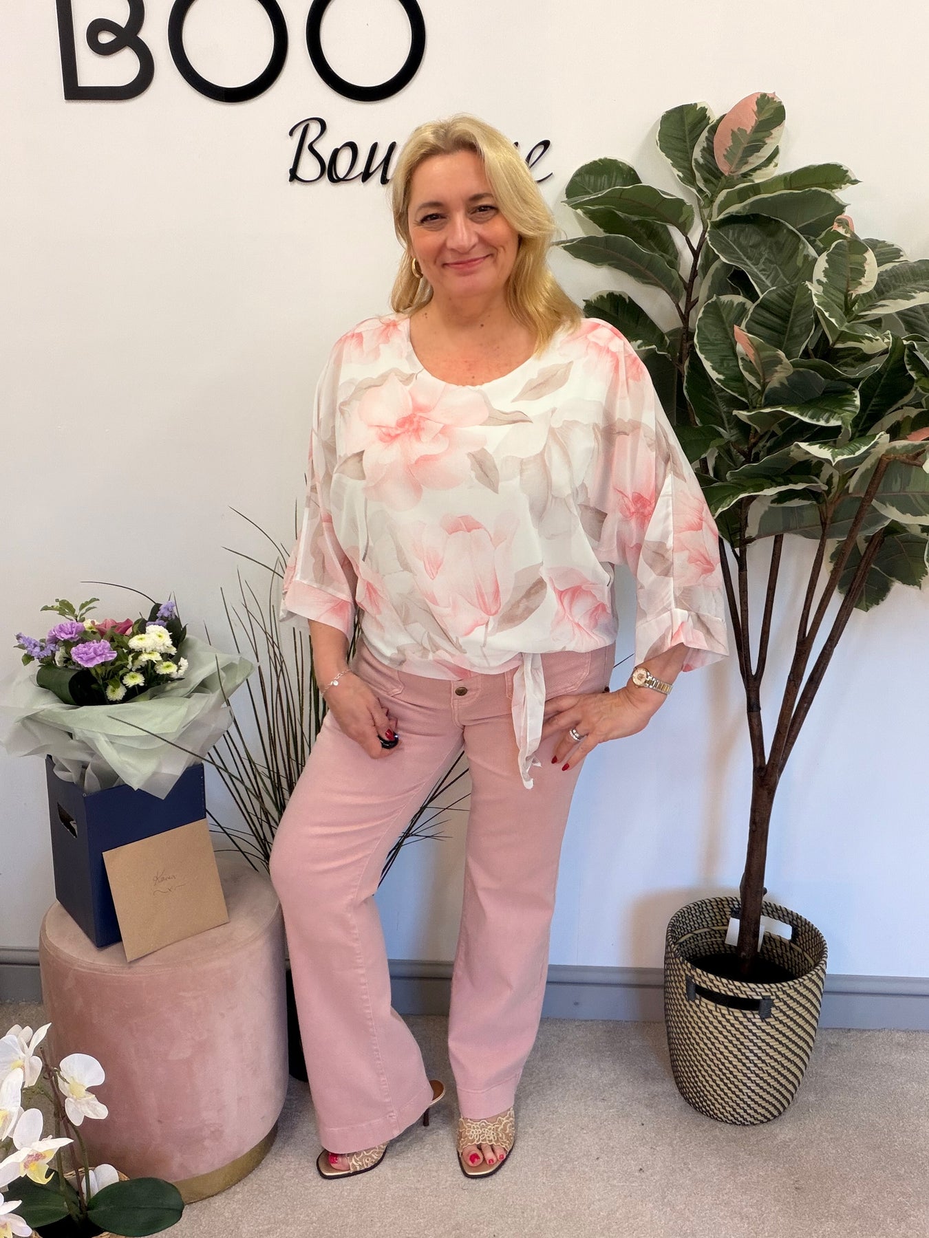 Ladies Fashion Pink Wide Leg Button Fly Jeans