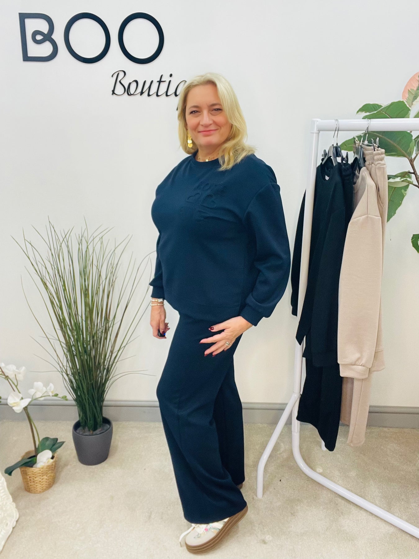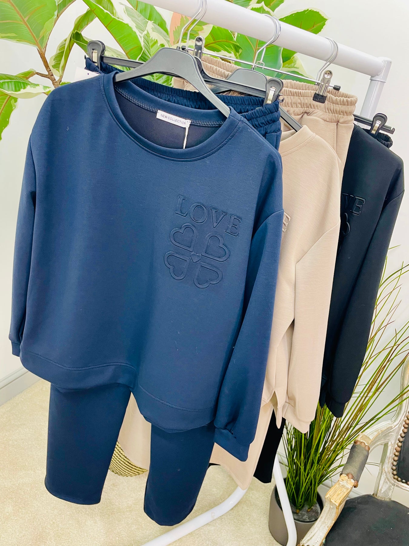 Get ready to elevate your wardrobe with The ANNIE co ord in 3 stunning colours. Made with a scuba feel, this set offers a loose fit top with an embossed LOVE logo, and straight leg trousers with an elasticated tie waist and convenient side pockets. Perfect for sizes 8 to 16, this co ord brings comfort and style together effortlessly.