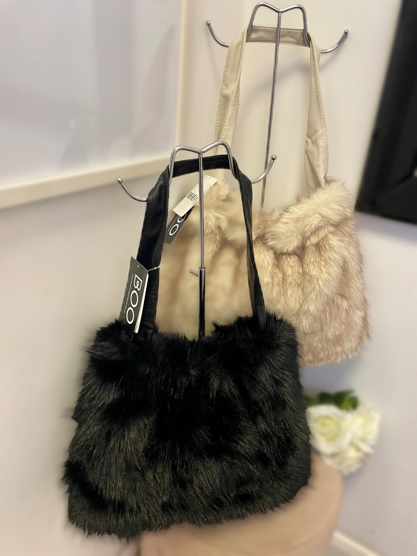 The DEE faux fur bag is a stylish addition to any outfit. With its faux leather handles and magnetic fastening, it not only looks great, but also provides convenience and security. Available in two colours, this bag is the perfect blend of fashion and function.