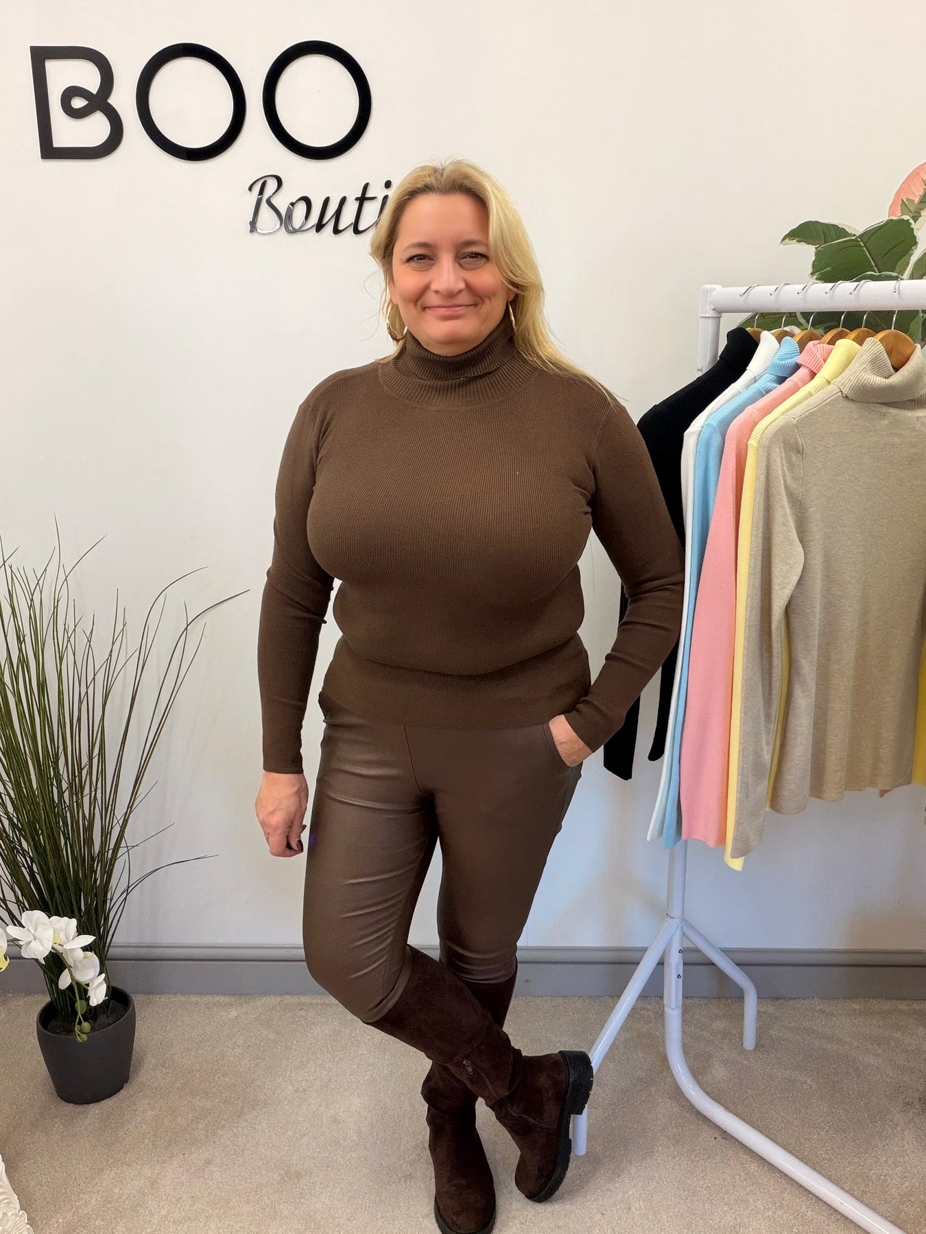 Introducing The JANE roll neck top, a versatile staple for winter fashion. Made from soft stretch knit fabric, this roll neck jumper comes in 7 colours and is one size fits all (size 8 to 14). Stay cozy and stylish all season long.