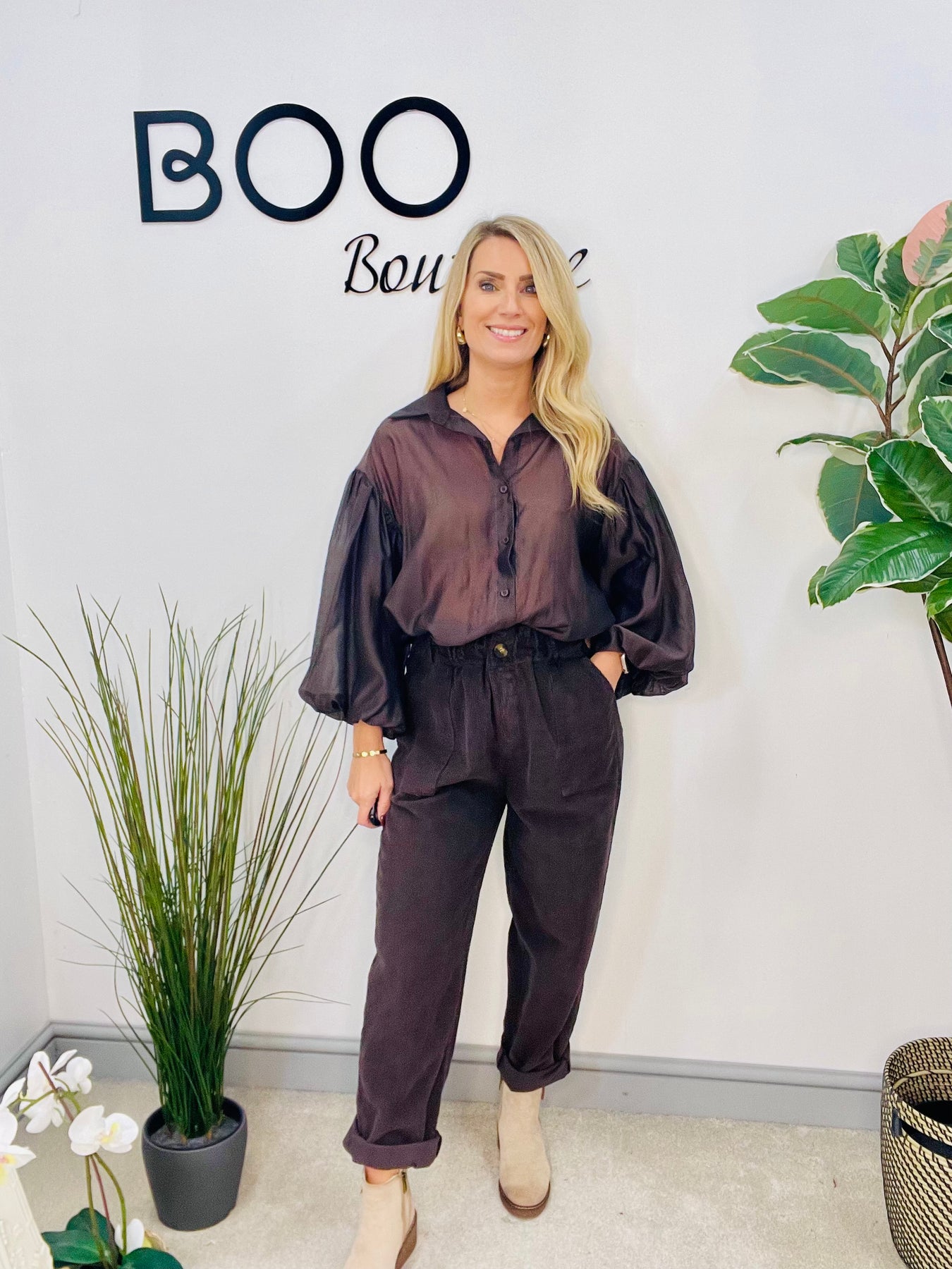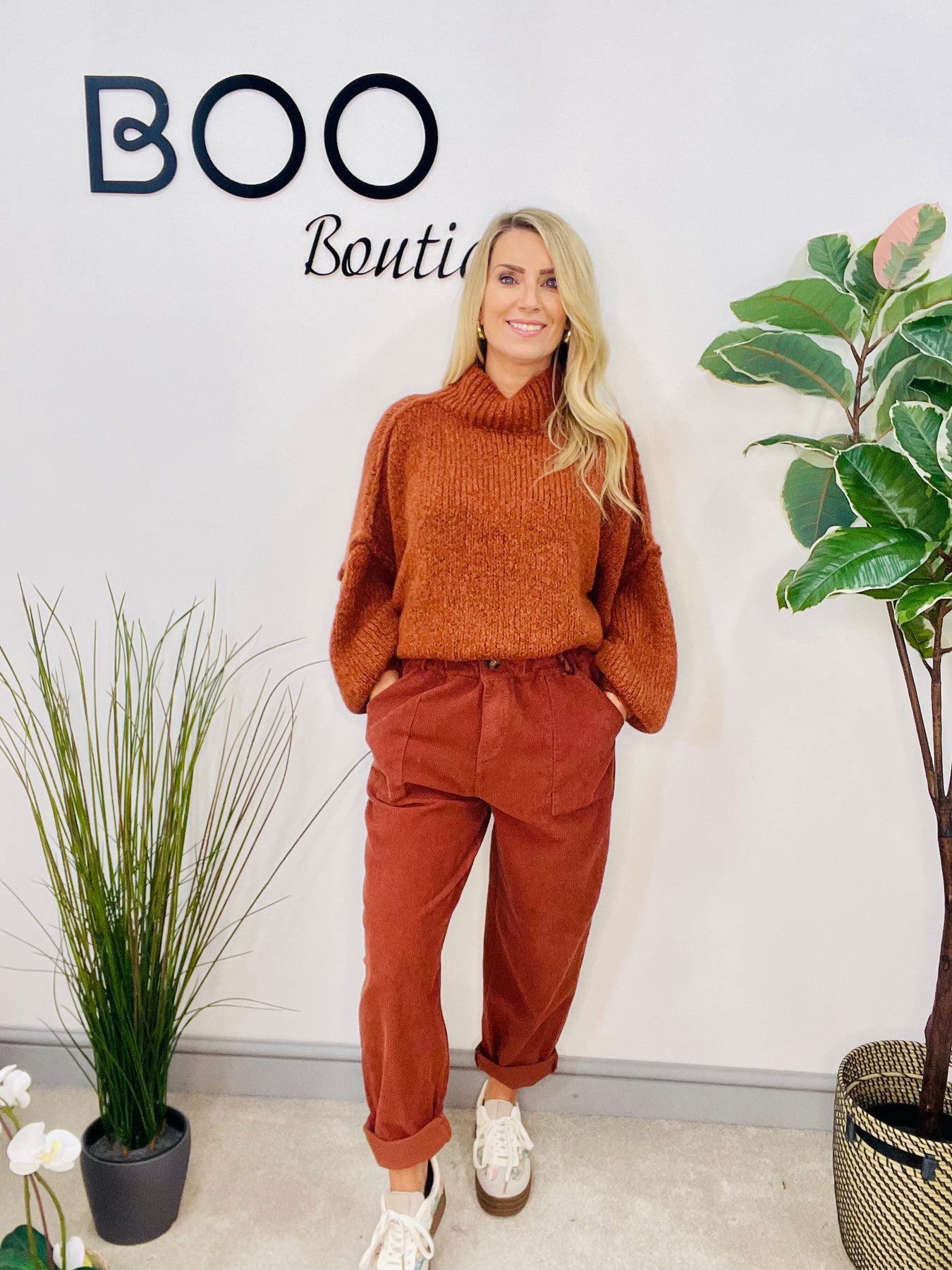 LADIES BAGGY CORDUROY TROUSERS - TAUPE, RUST & BROWN