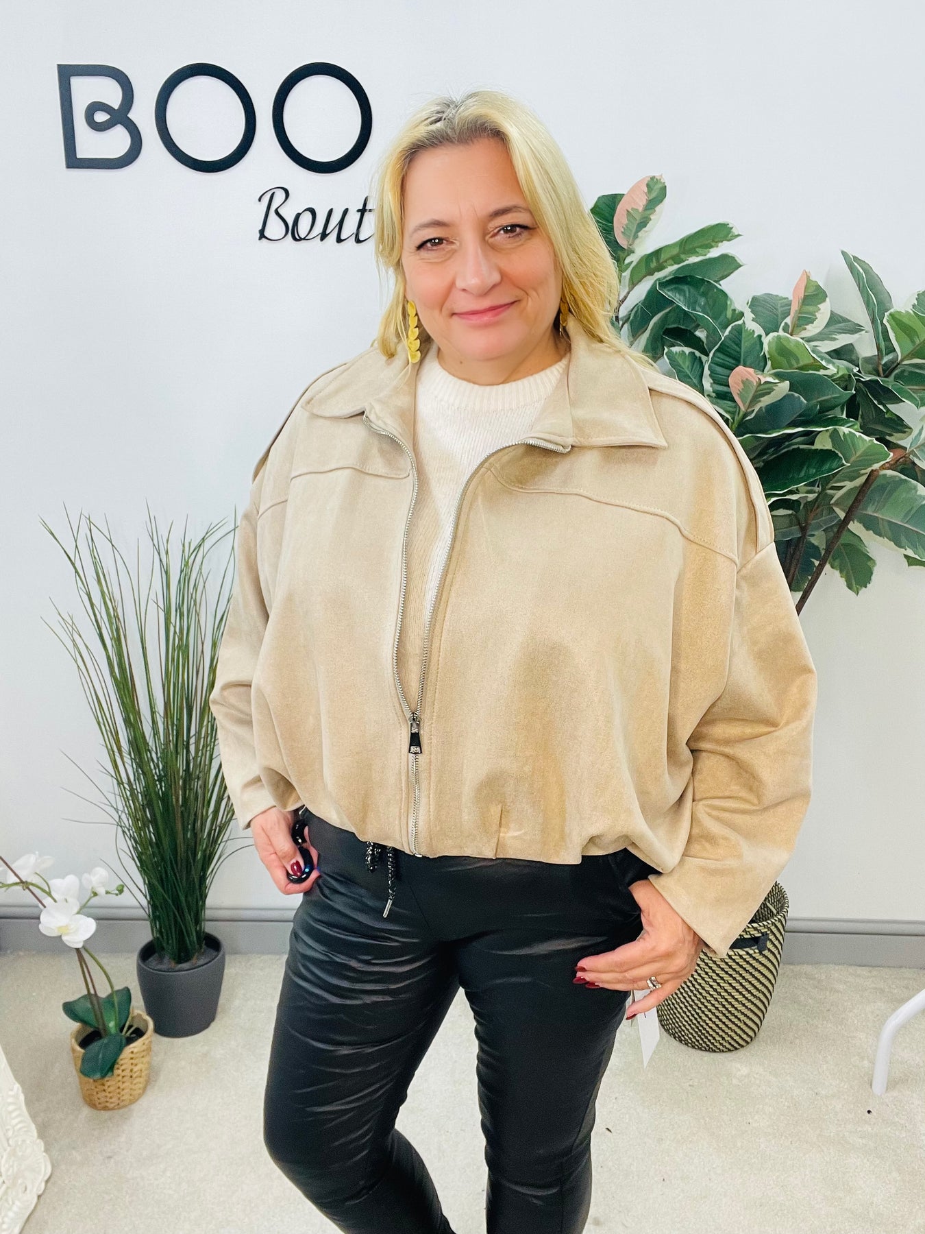 LADIES FASHION FAUX SUEDE BOMBER JACKET - BLACK, BEIGE, BROWN & BURGUNDY WINE