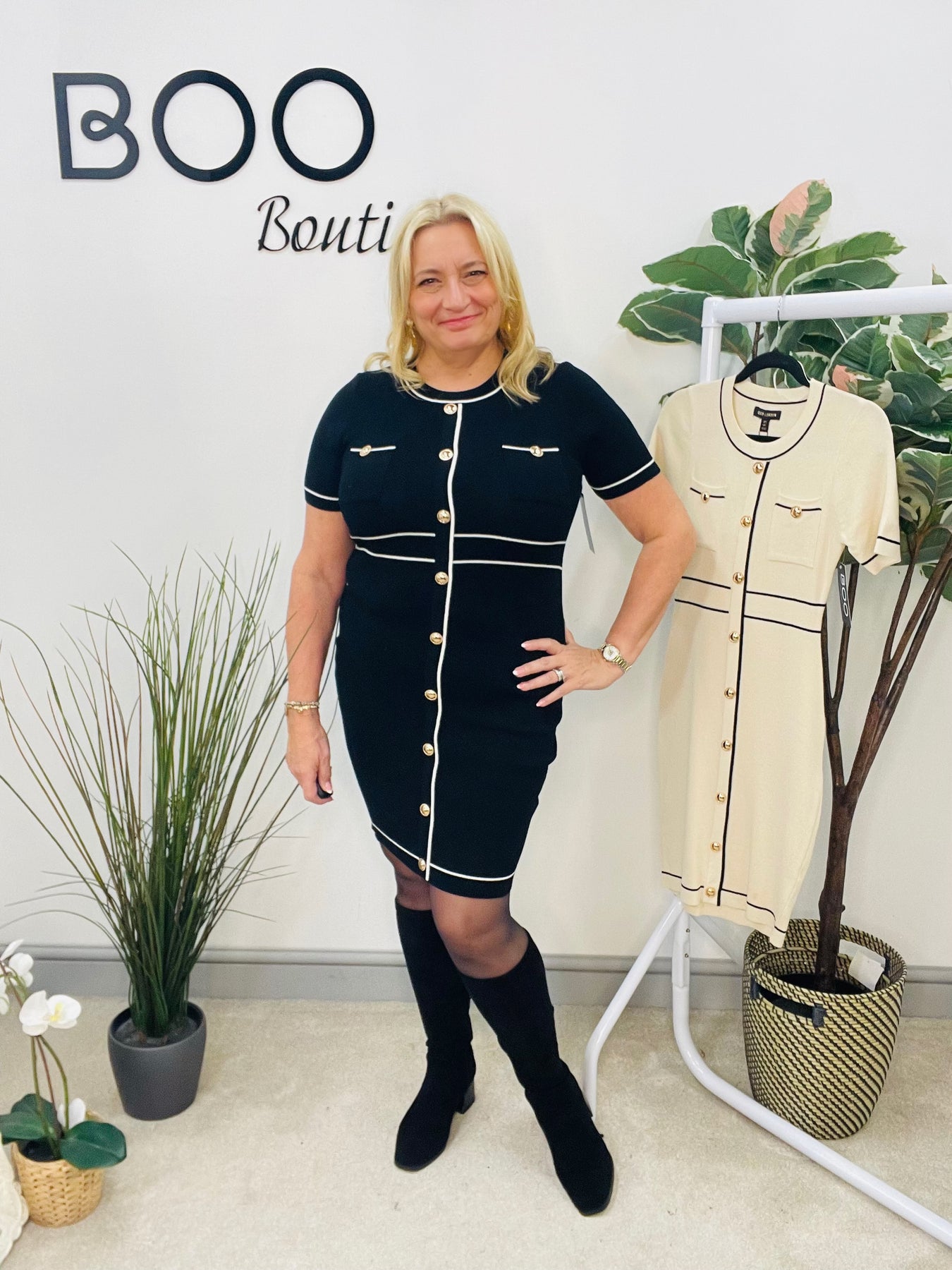 LADIES FASHION KNITTED JUMPER DRESS - BLACK & CREAM