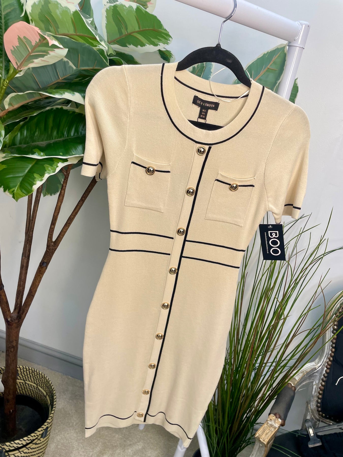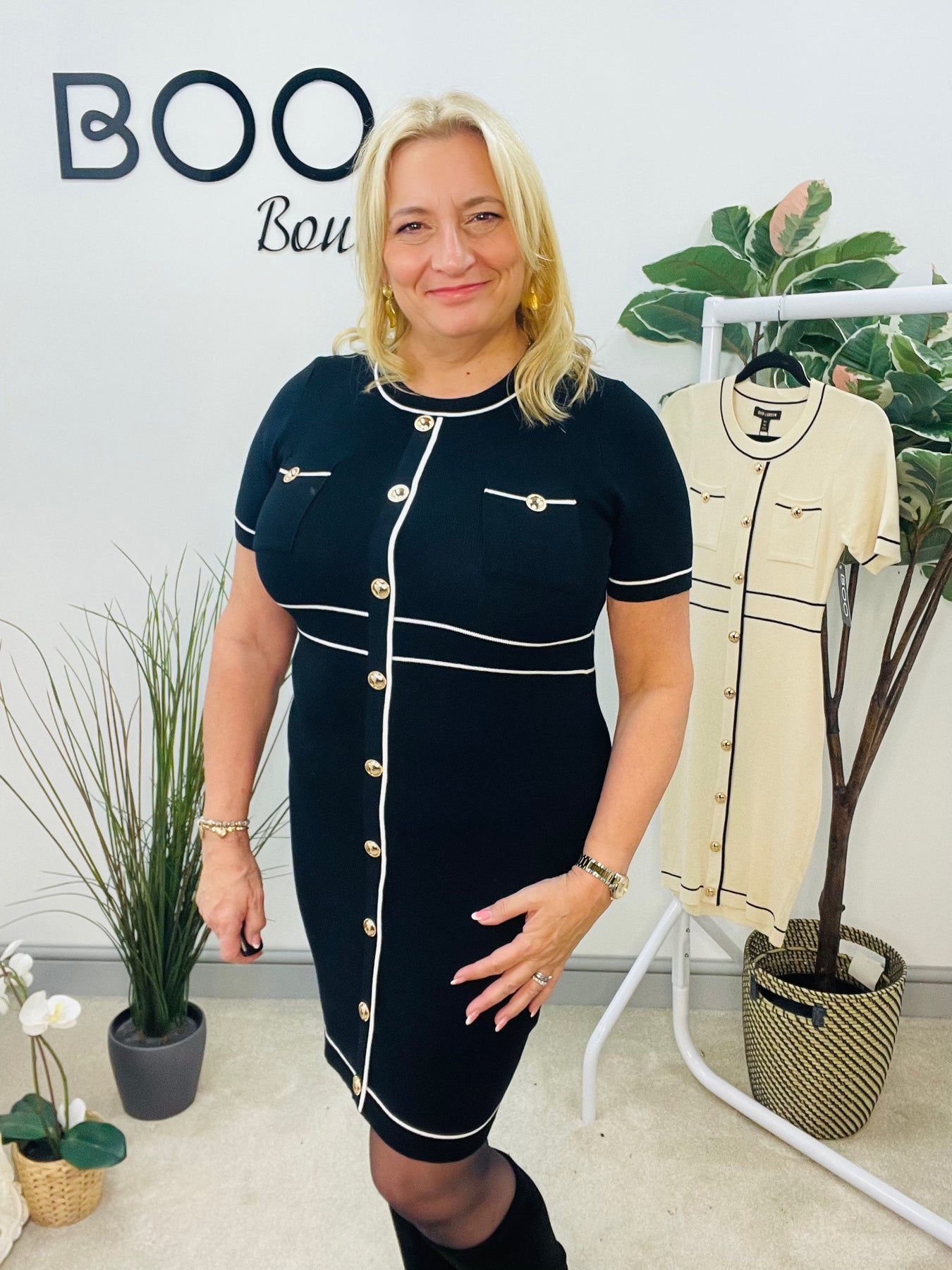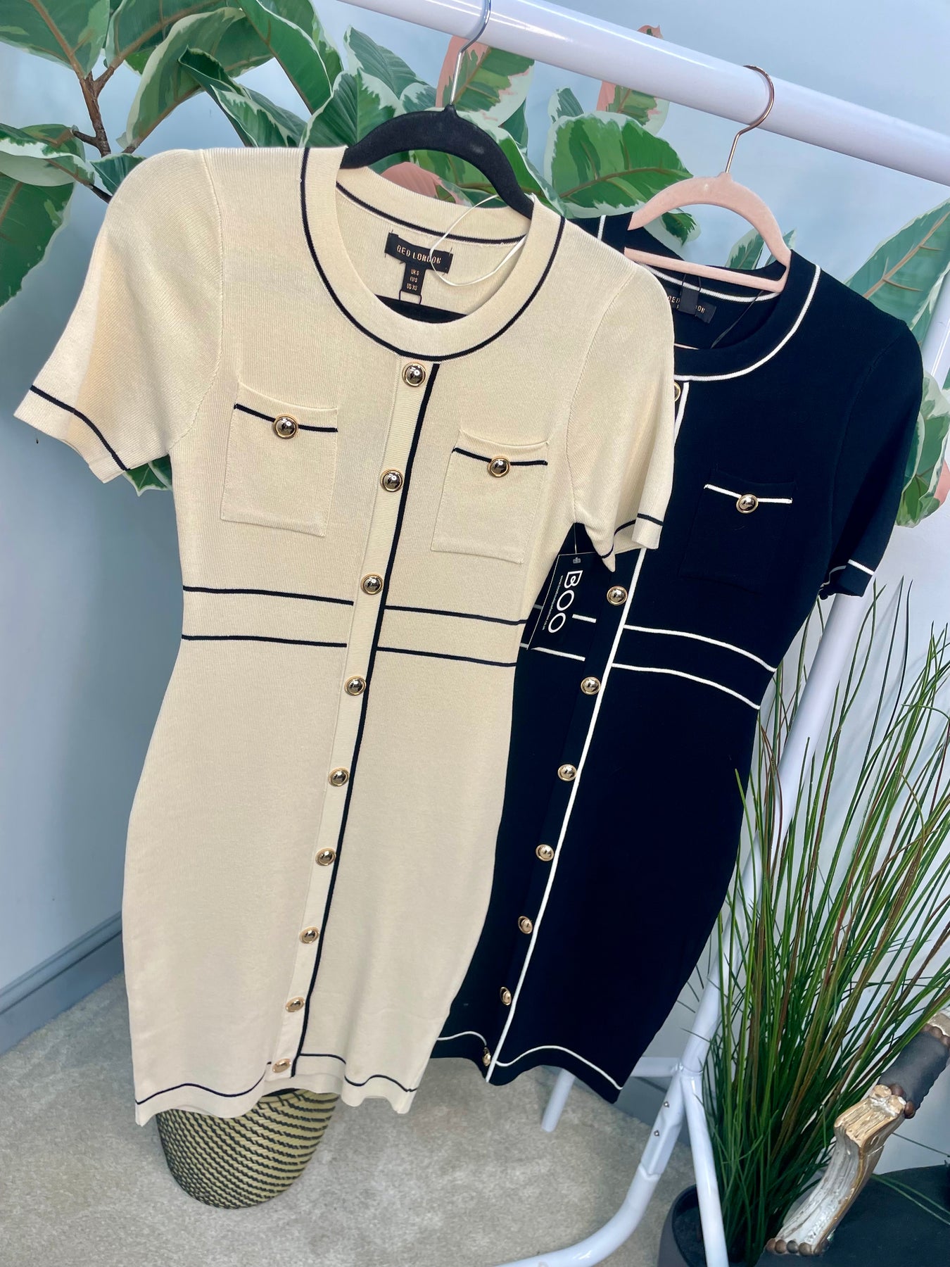 Get ready to elevate your style with The PAIGE dress. Made with a stylish knitted fabric, this dress features gold button detailing for a chic touch. Available in 2 colours, this dress is perfect for any occasion. Upgrade your wardrobe with The PAIGE dress today!