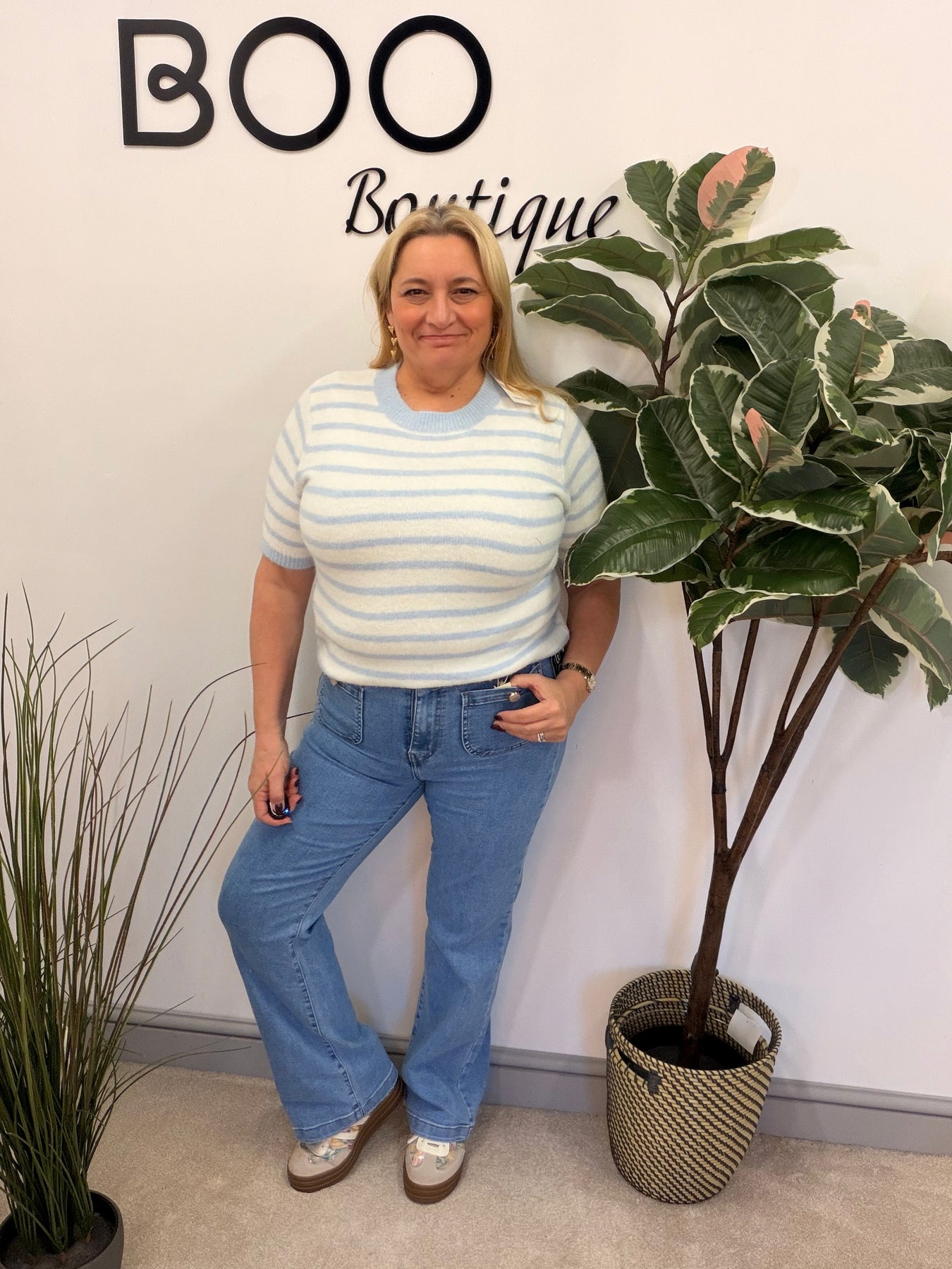Ladies Fashion Light Blue Denim Straight Leg Jeans