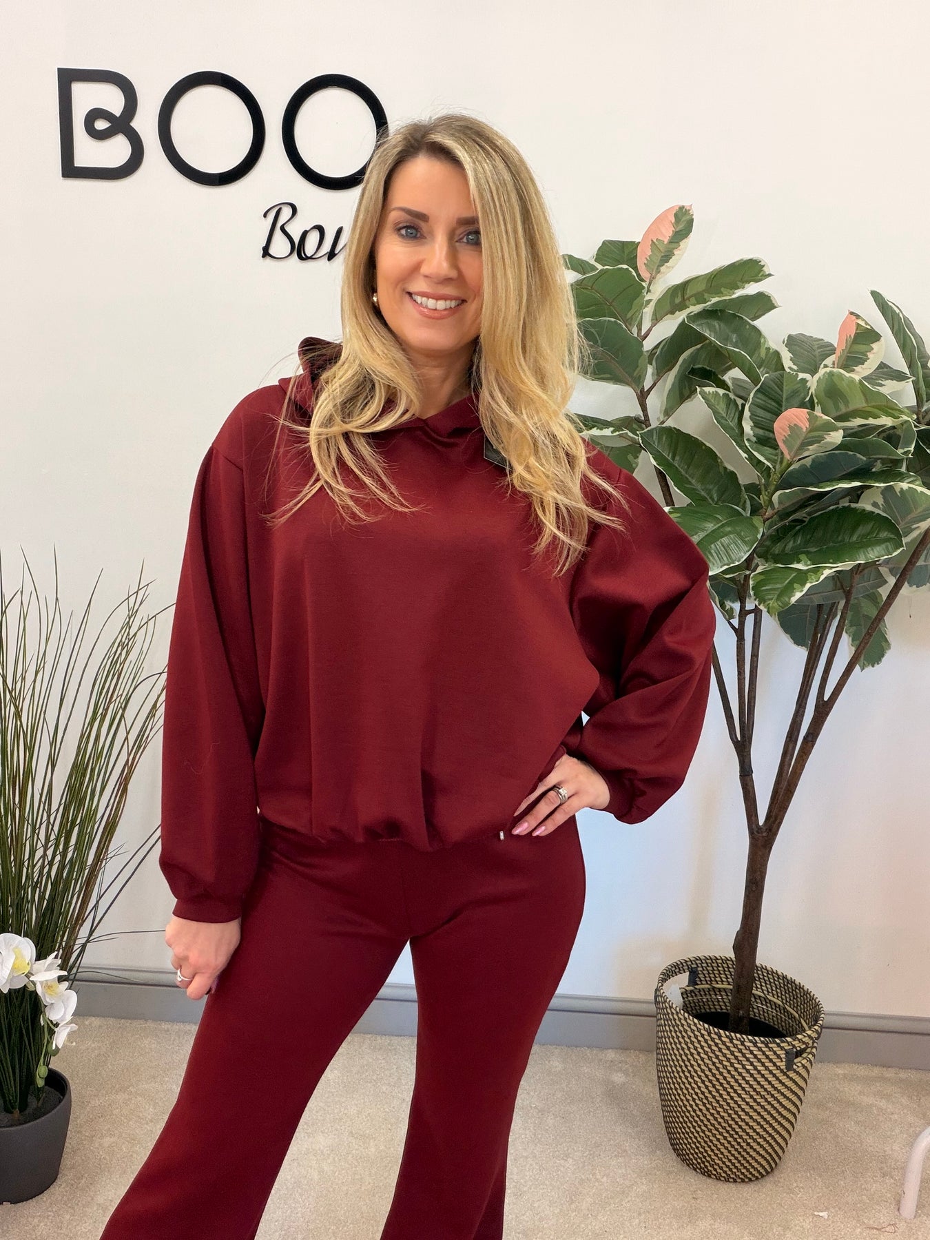 Ladies Fashion Flared Leg Tracksuit Co ord set burgundy