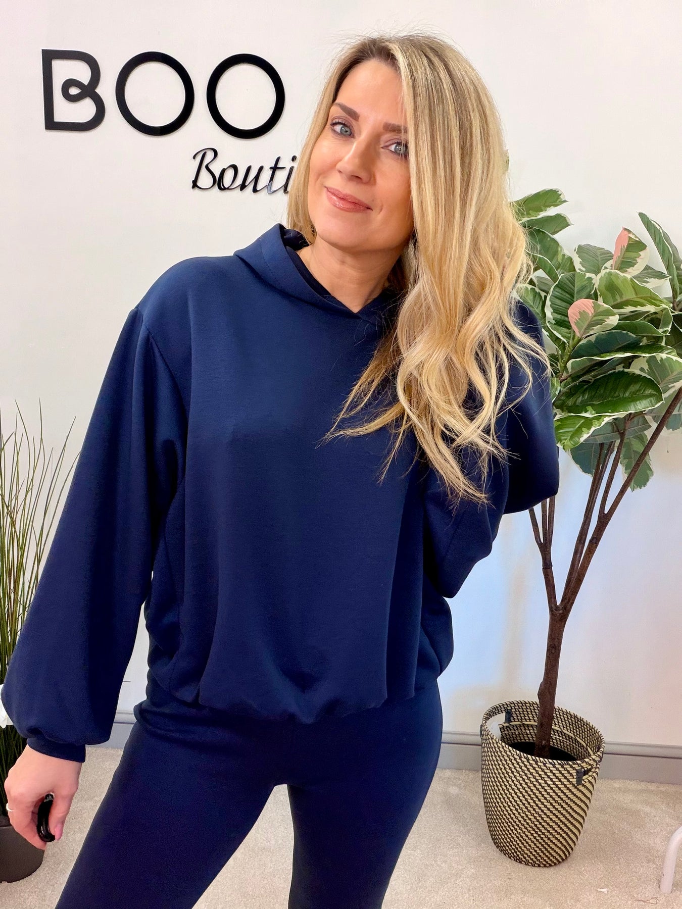 Long sleeve hoody style top with shaped Elasticated bottom