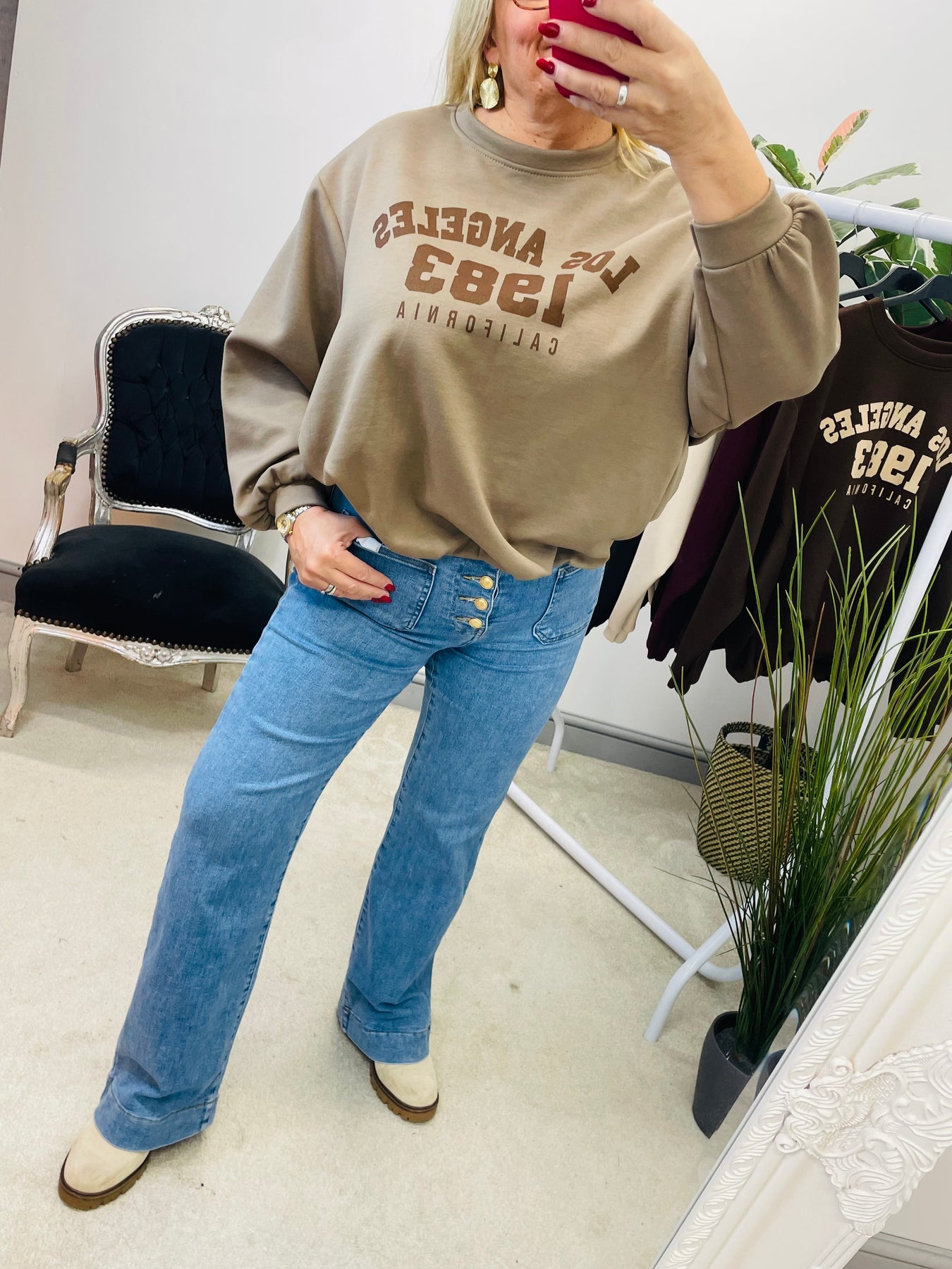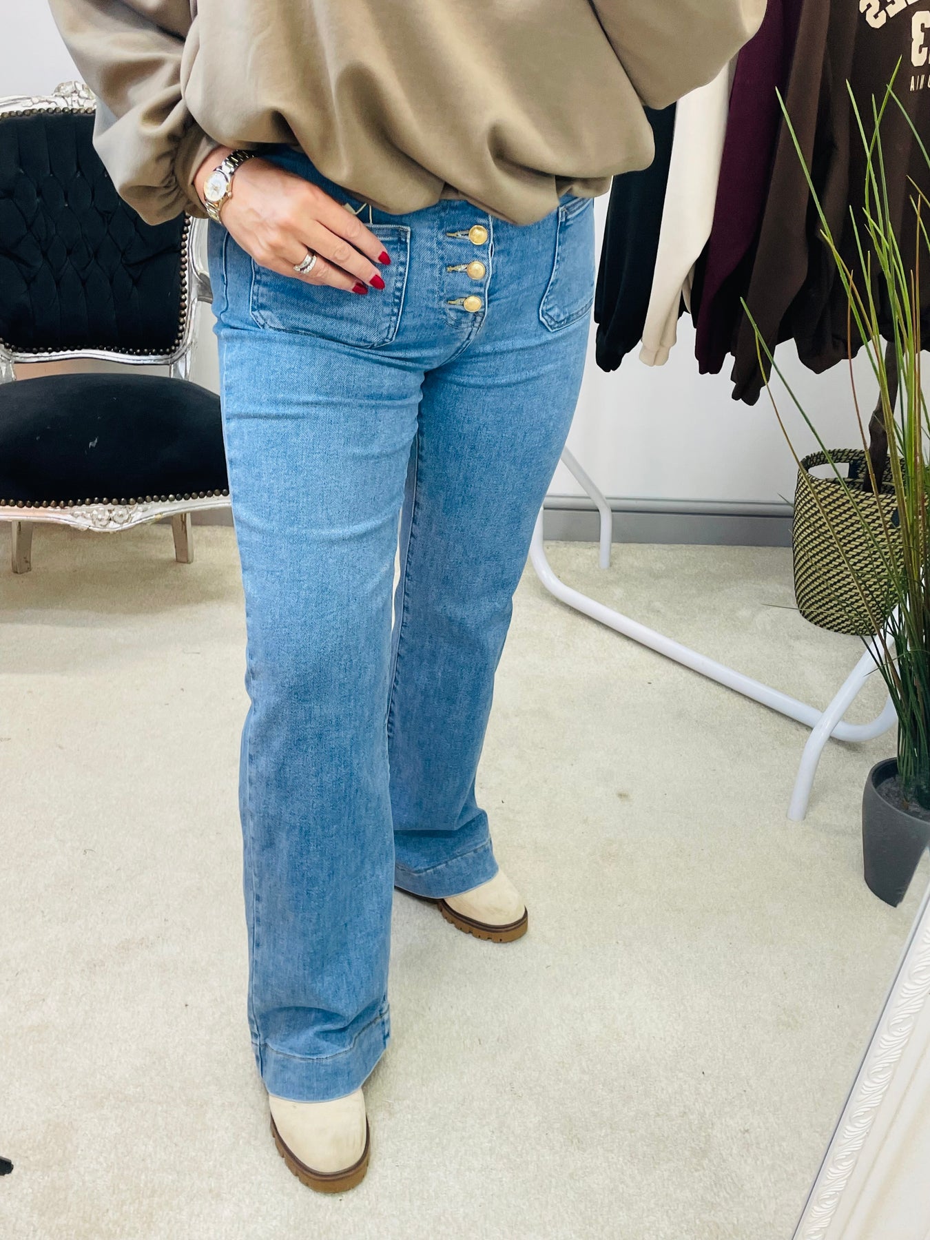 LADIES LIGHT DENIM WIDE LEG BUTTON FLY JEANS