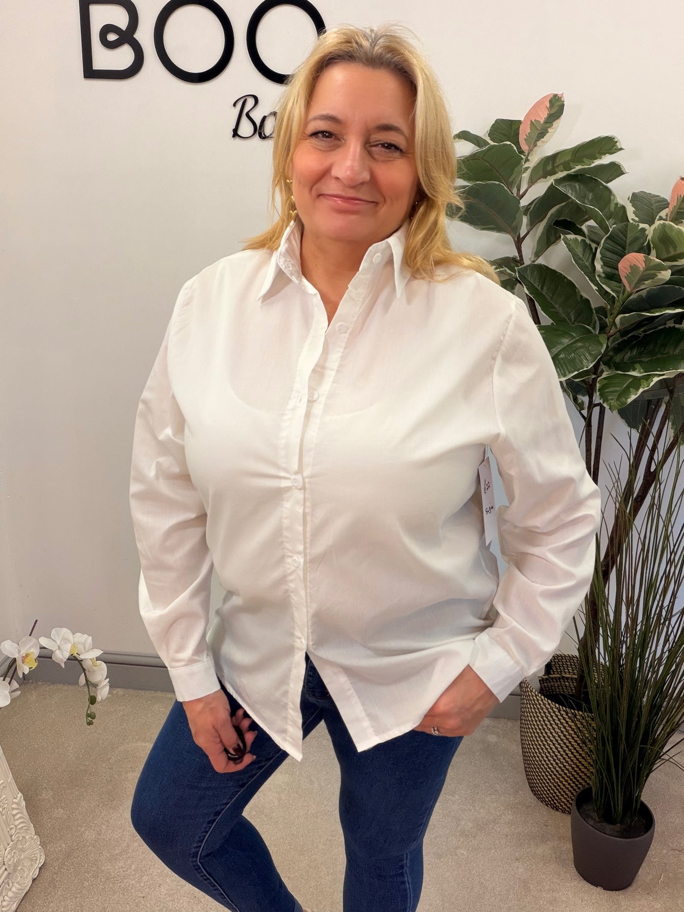 Elevate your wardrobe with The SUZIE white cotton shirt! This versatile staple is perfect for pairing with a blazer for a polished look or wearing under a tank top for a casual vibe. Designed to fit sizes 8 to 16, it beautifully combines comfort and style for any occasion.
