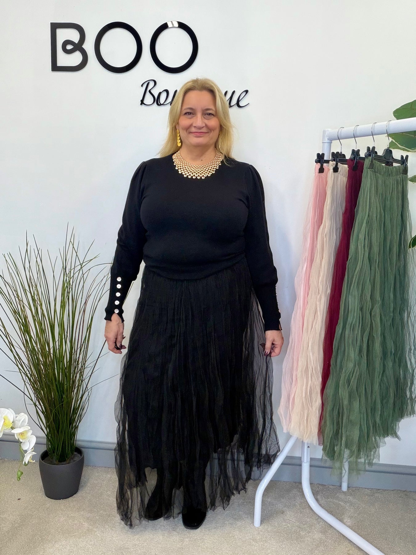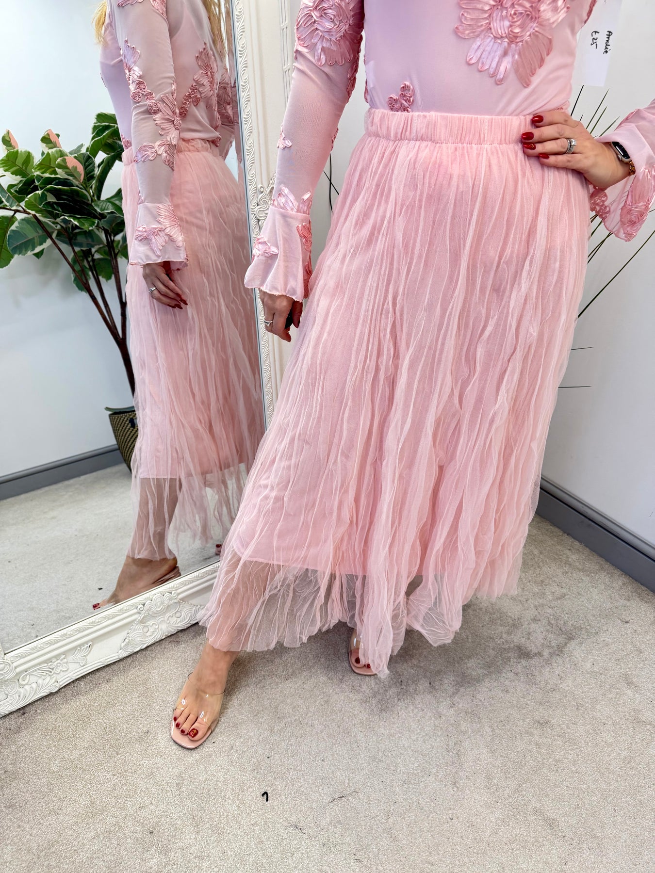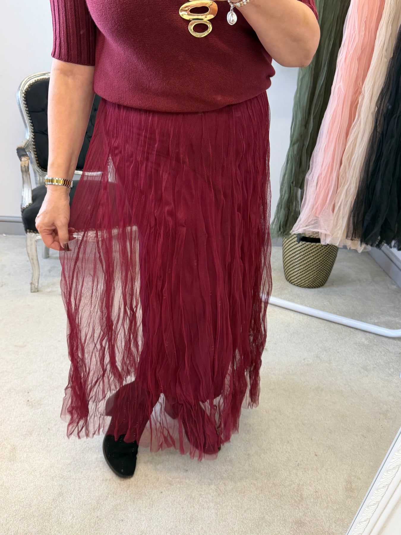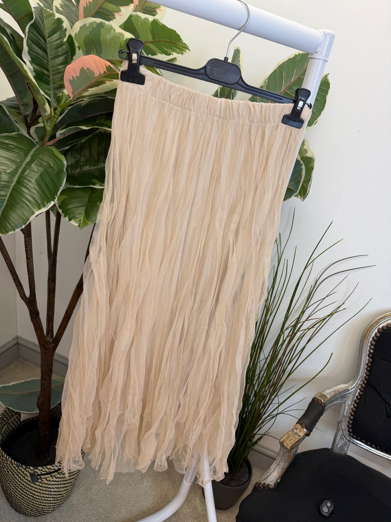 LADIES NET FAIRY MAXI SKIRT - BLACK, BERRY, KHAKI, BEIGE & PINK