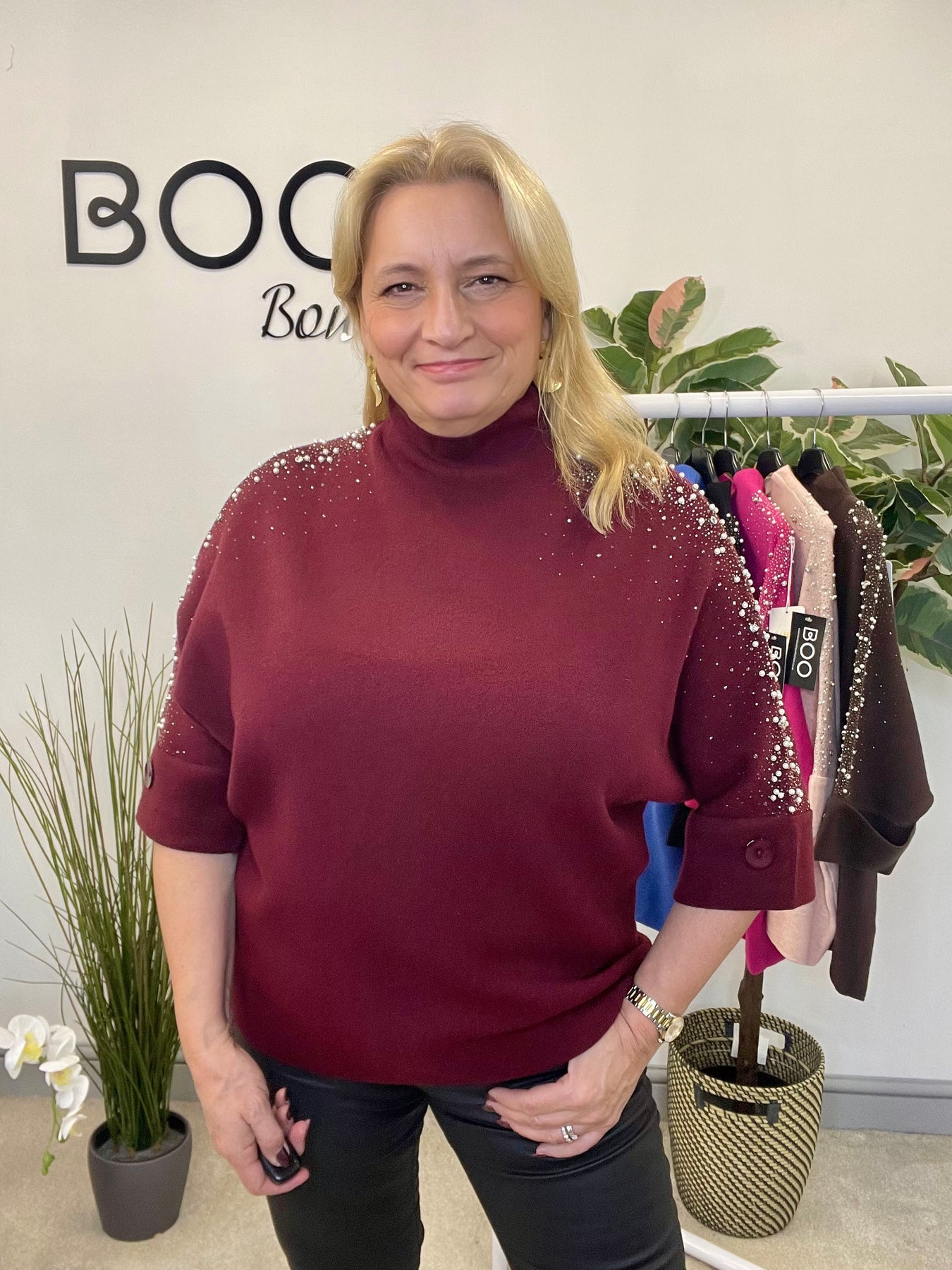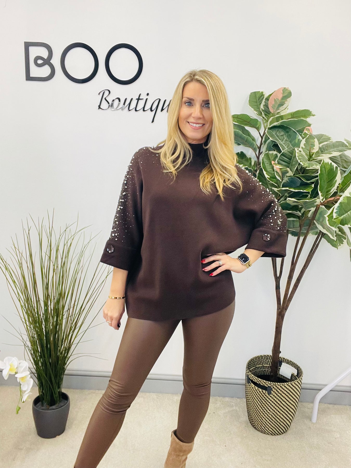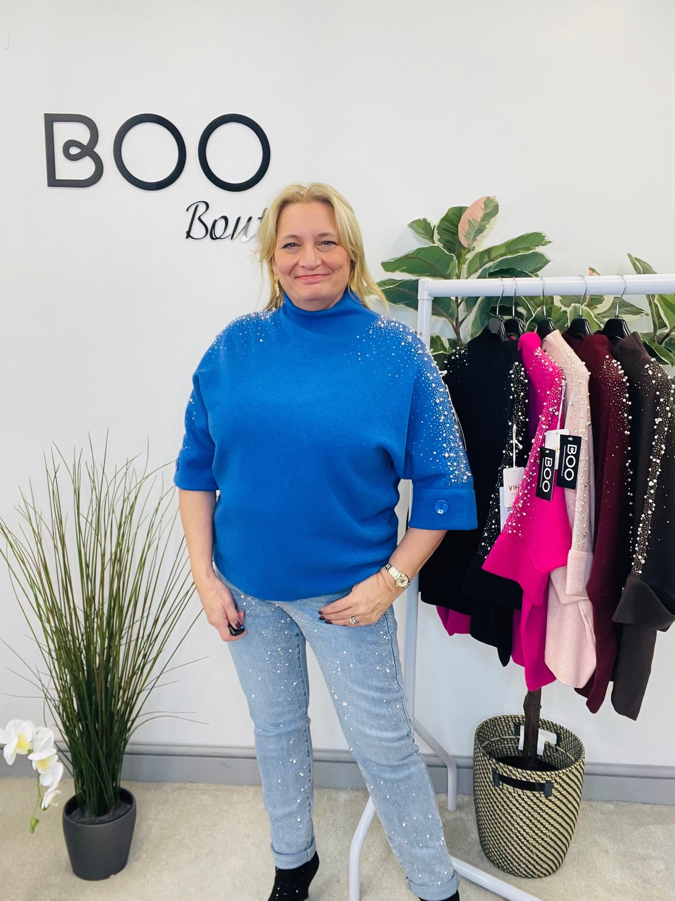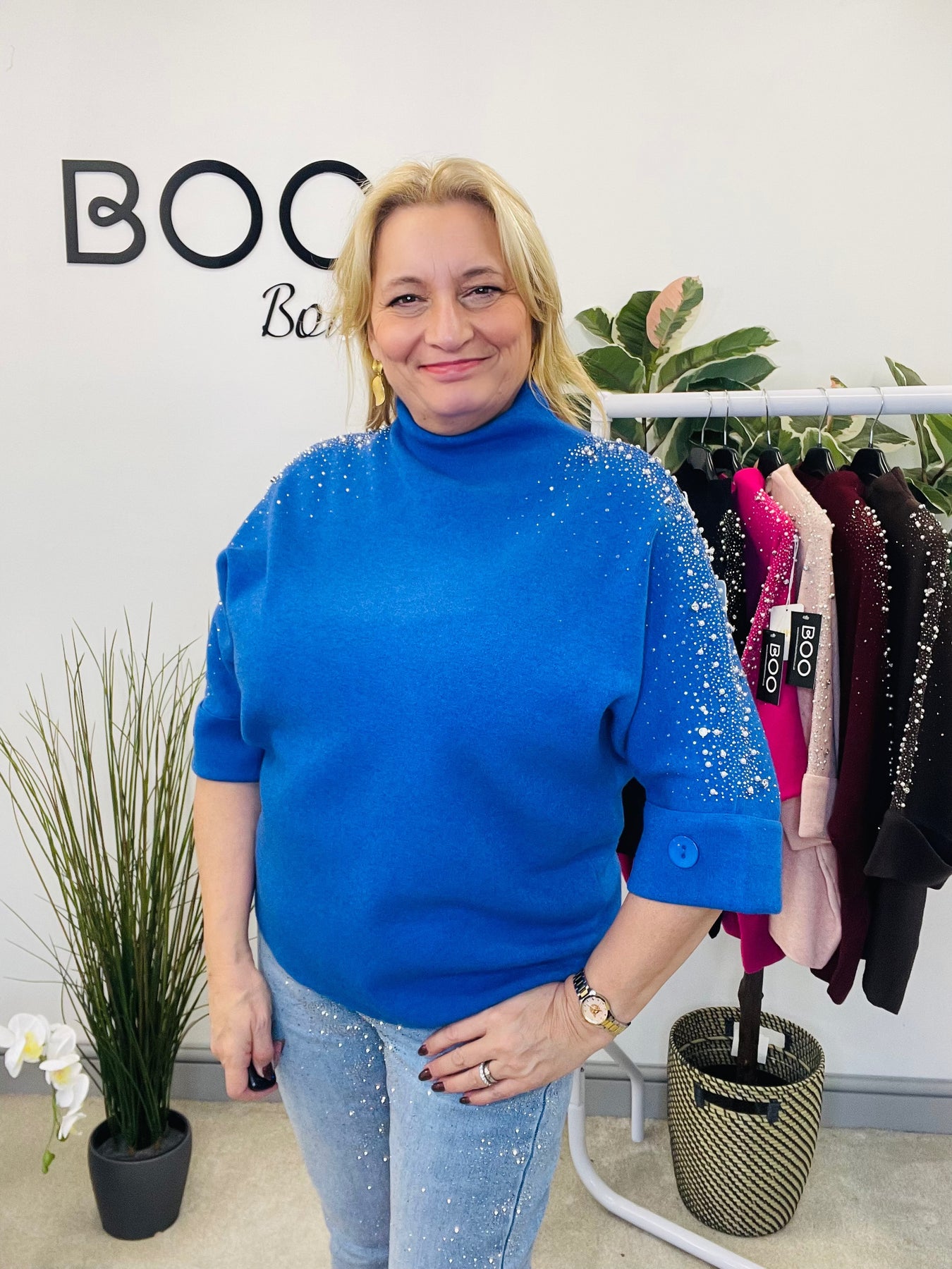 LADIES DIAMANTE SPARKLY JUMPER - FUSCHIA, PINK, BLACK, BERRY, BLUE, BROWN