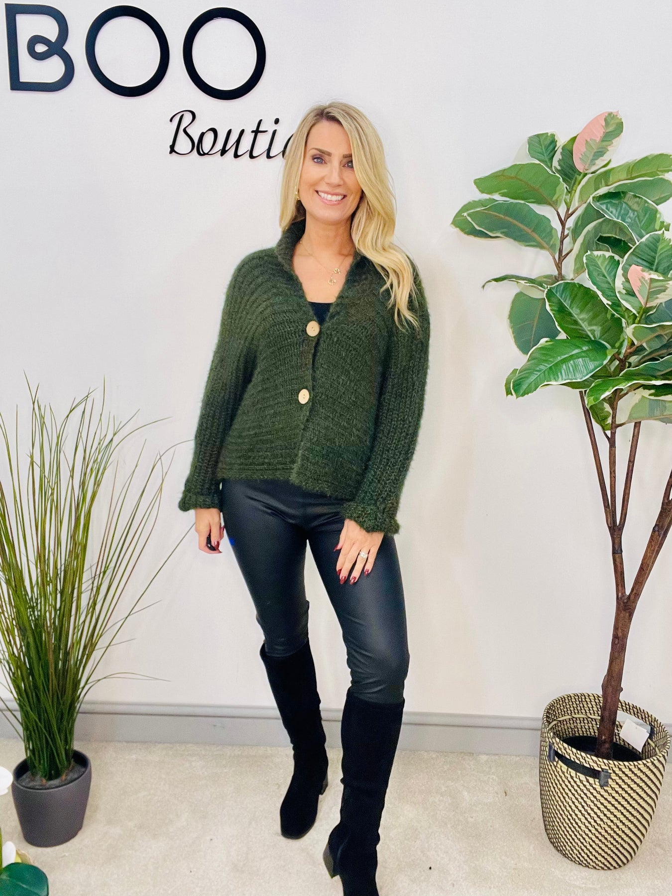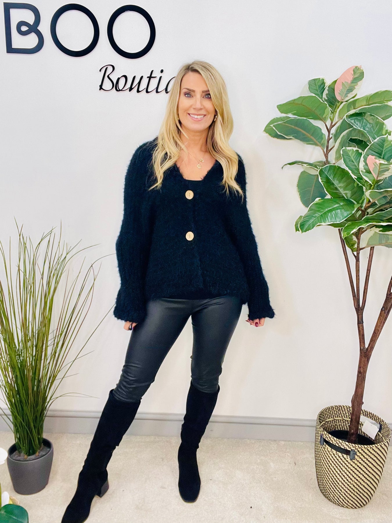 The CLARA cardigan is a must-have for any wardrobe. Made with soft and fluffy material, it features two wooden button fastenings for a stylish touch. Its one-size design fits sizes 8 to 16, making it a versatile and comfortable option for all. Available in 6 beautiful colours. Add a cozy and chic layer to any outfit with the CLARA cardigan.