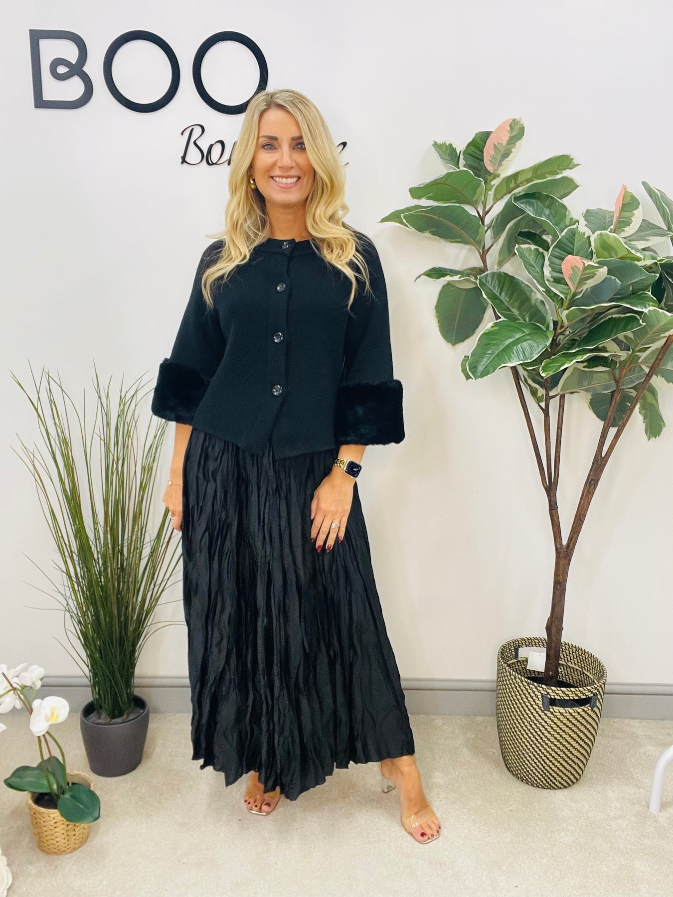 The DAISY cardigan is a stylish addition to any wardrobe, featuring a soft knit and large faux fur cuff detail. With a one size fit for sizes 8 to 14, this cardigan is perfect for adding both warmth and fashion to any outfit.