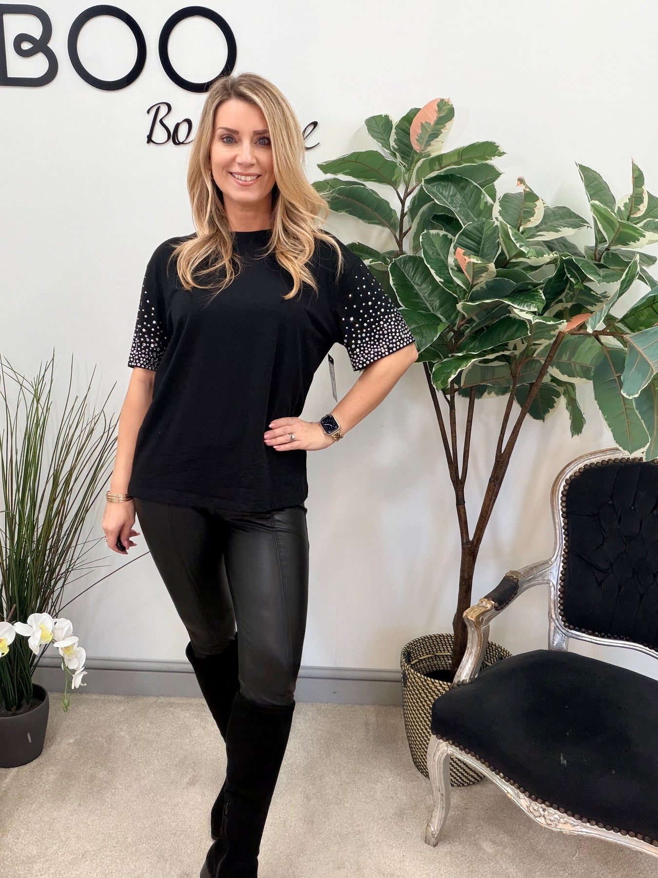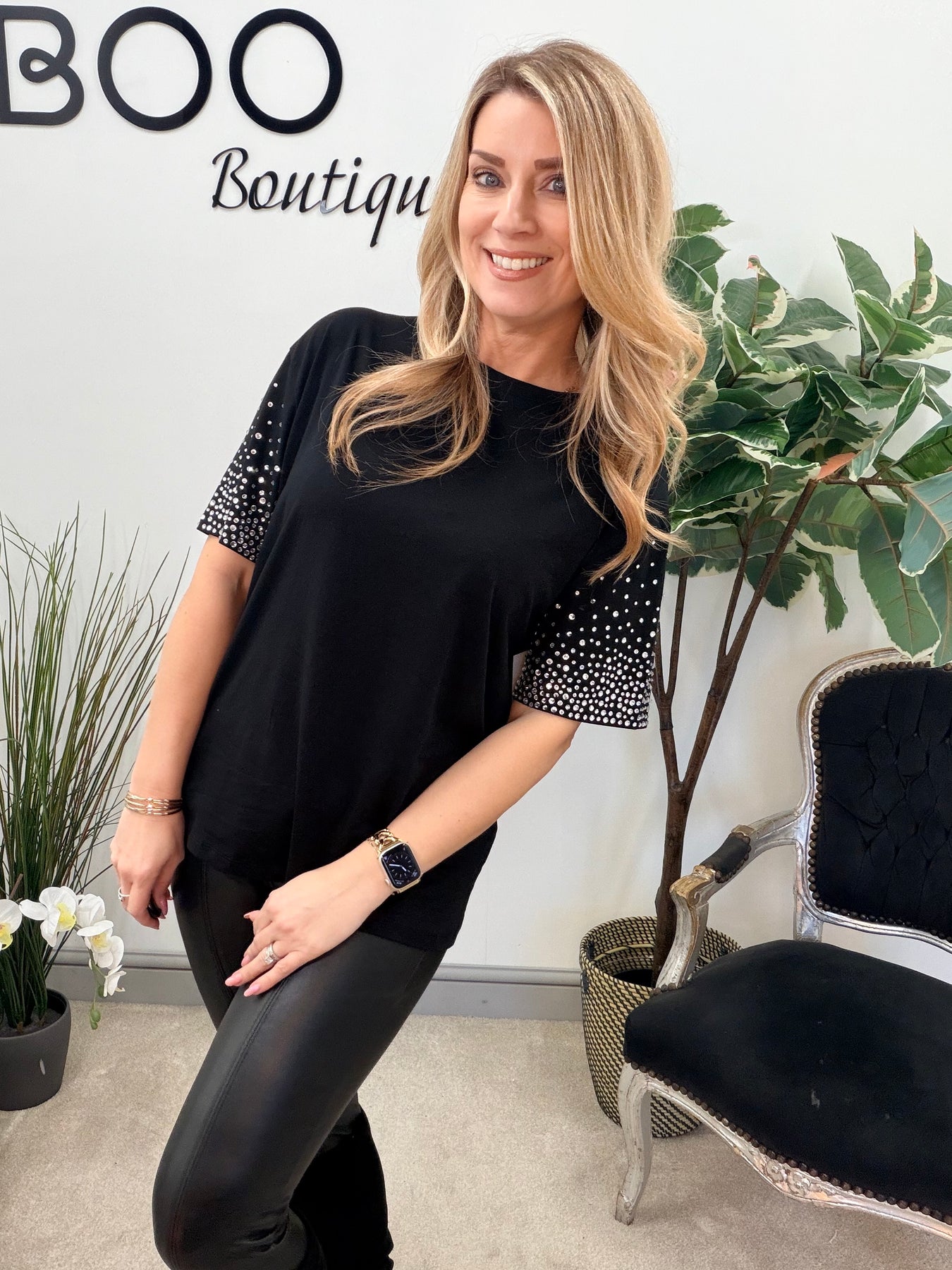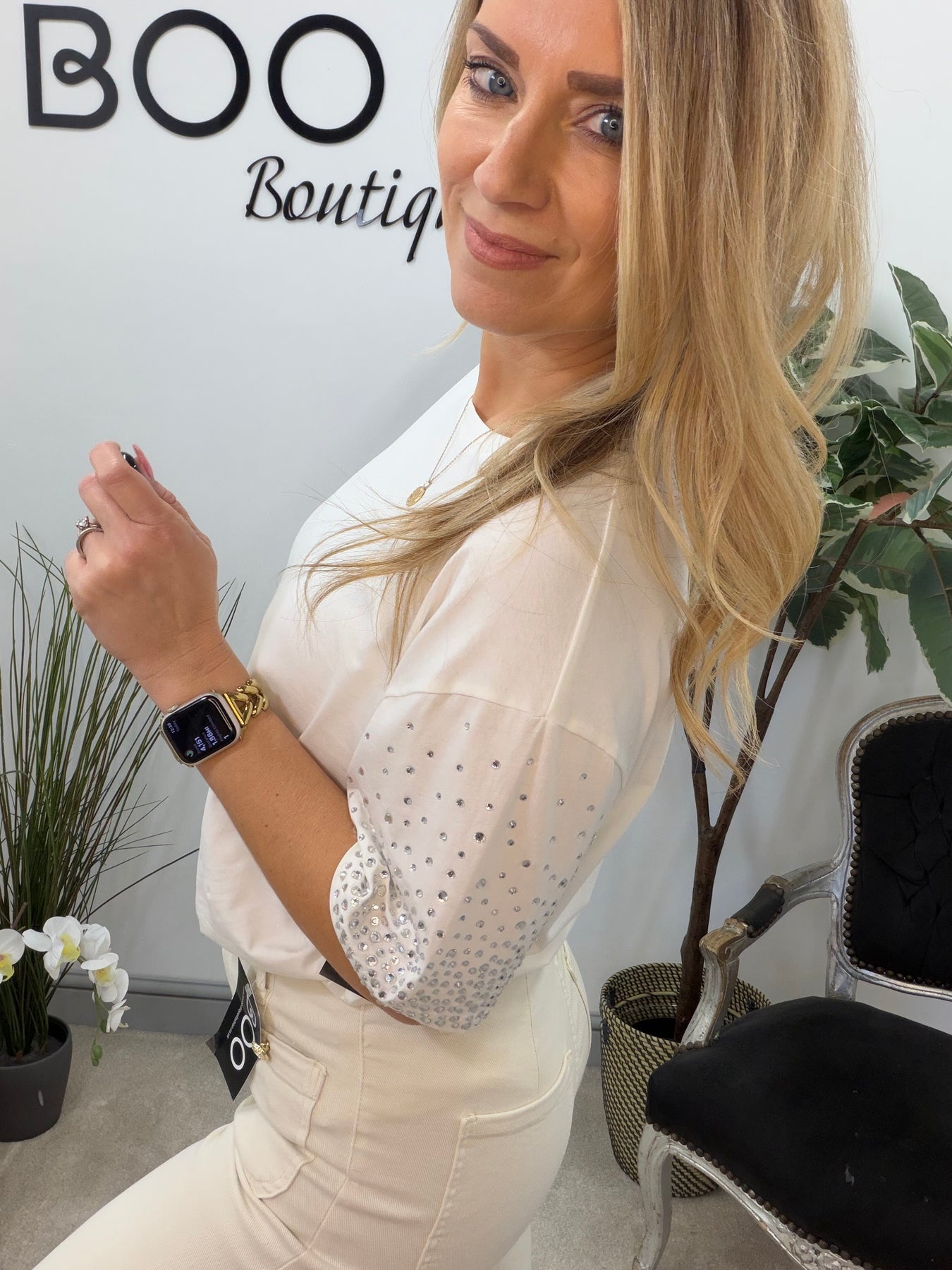 Elevate your wardrobe with The DAWN top! This stunning t-shirt features beautiful jewelled sleeves that add a touch of elegance to any outfit. Designed to fit sizes 8 to 14, it combines comfort with a dash of sophistication. Embrace a style that makes you shine!