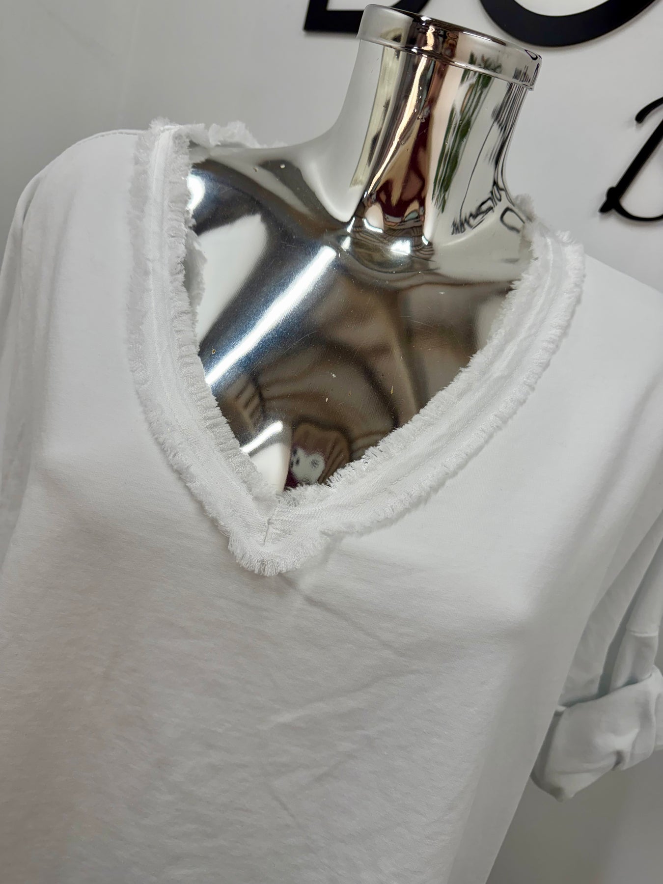 Elevate your everyday look with the DITA top. This casual v-neck top features a raw edge and satin detailing for a touch of elegance. One size fits sizes 8 to 16, providing effortless style for a range of body types. Upgrade your wardrobe with the DITA top.