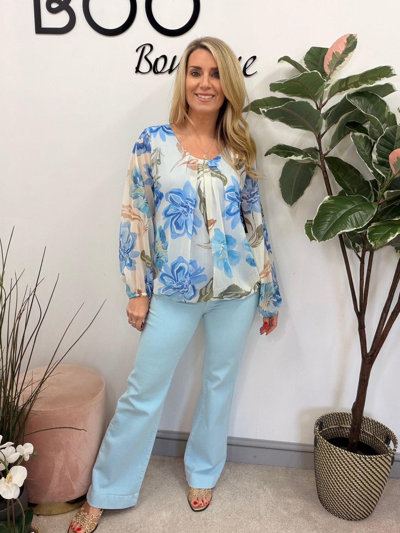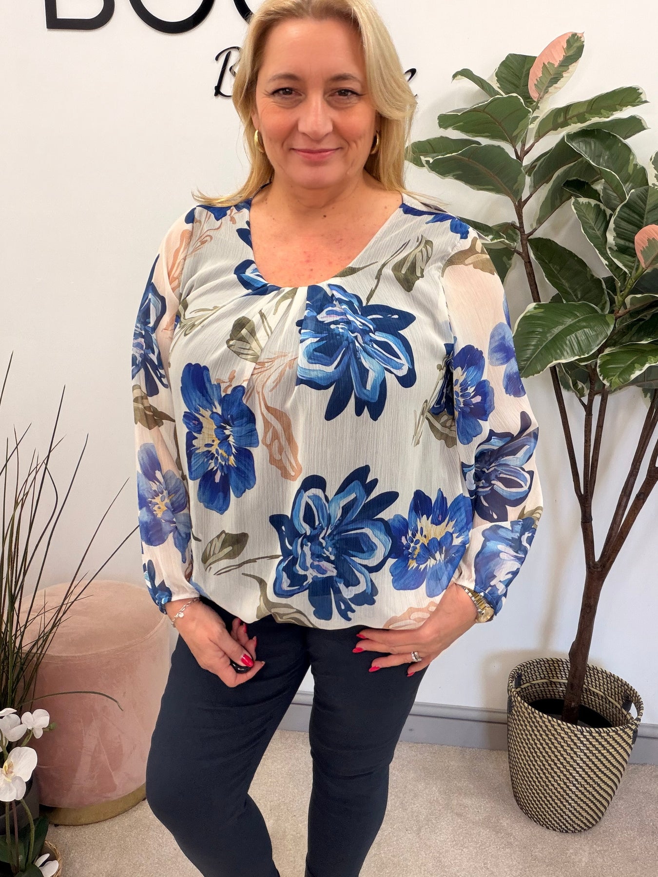 Elevate your wardrobe with The FLORA blouse, a stunning floral print chiffon top designed to blend comfort and style. Its elasticated blouson hem adds a touch of elegance while ensuring a flattering fit for sizes 10 to 16