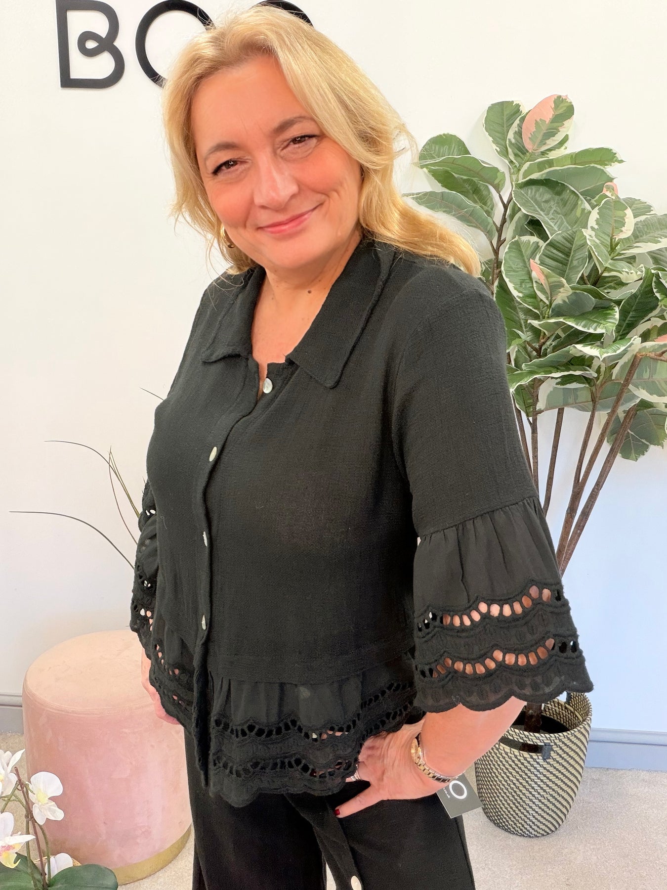 Ladies Fashion Broderie Anglaise Teabag Linen Top