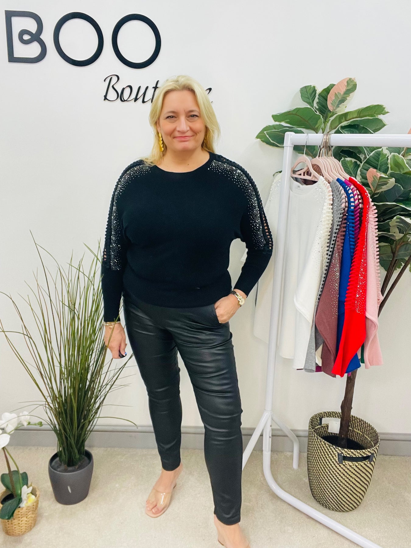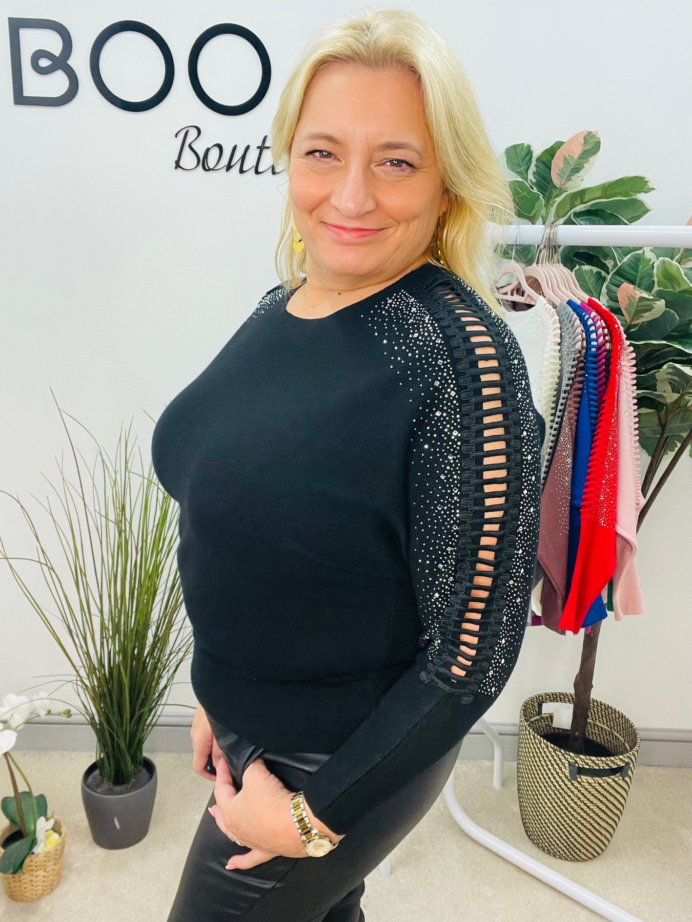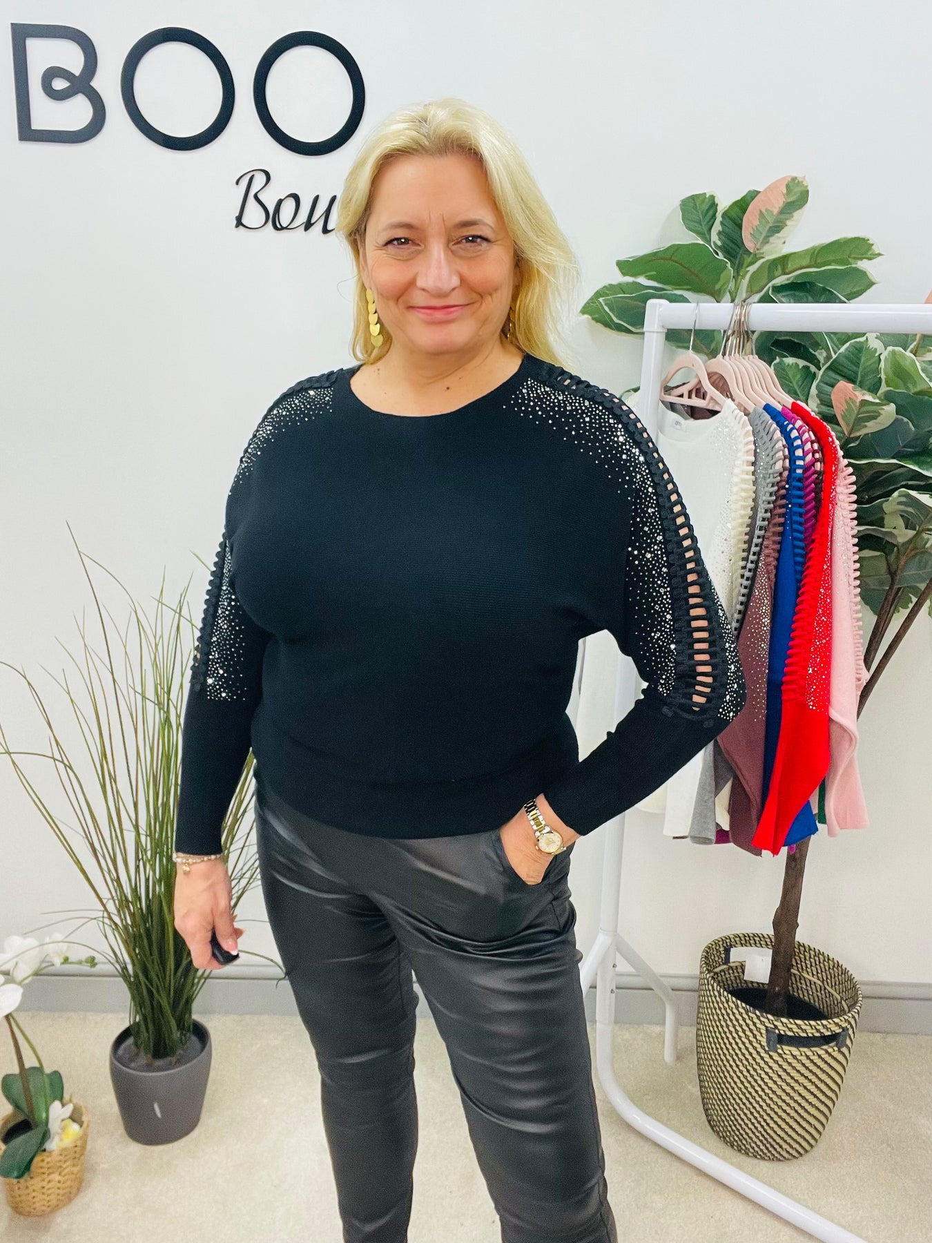 LADIES DIAMANTE BATWING JUMPER BLACK