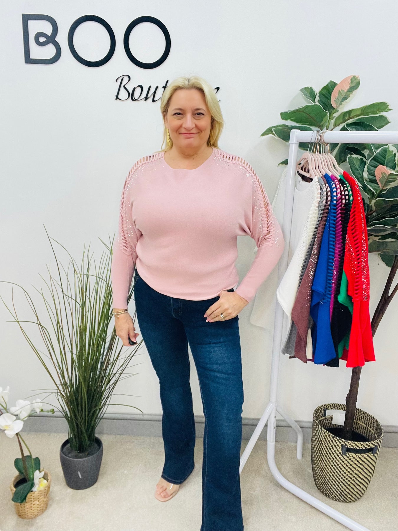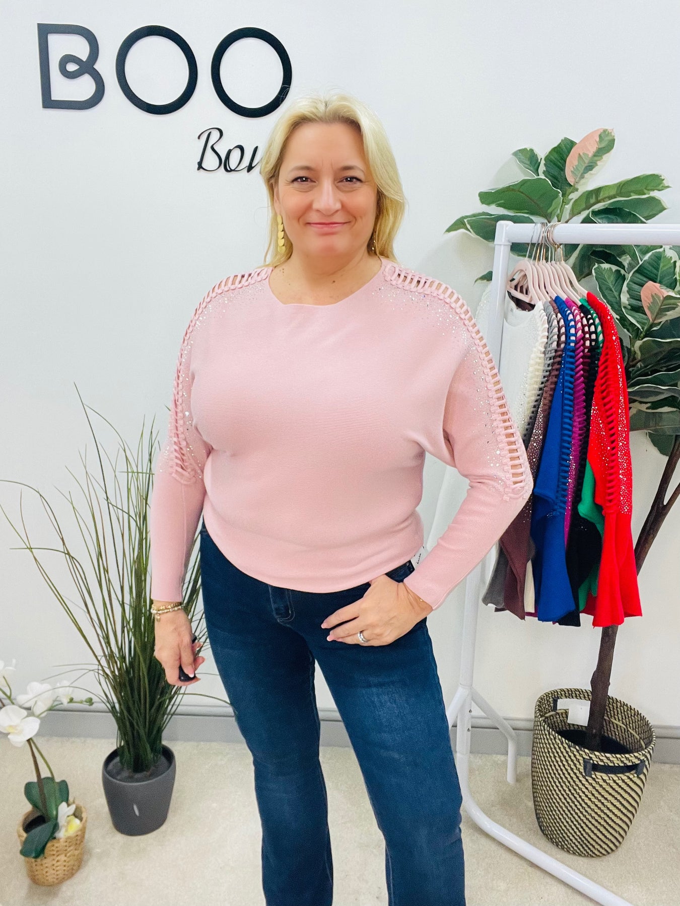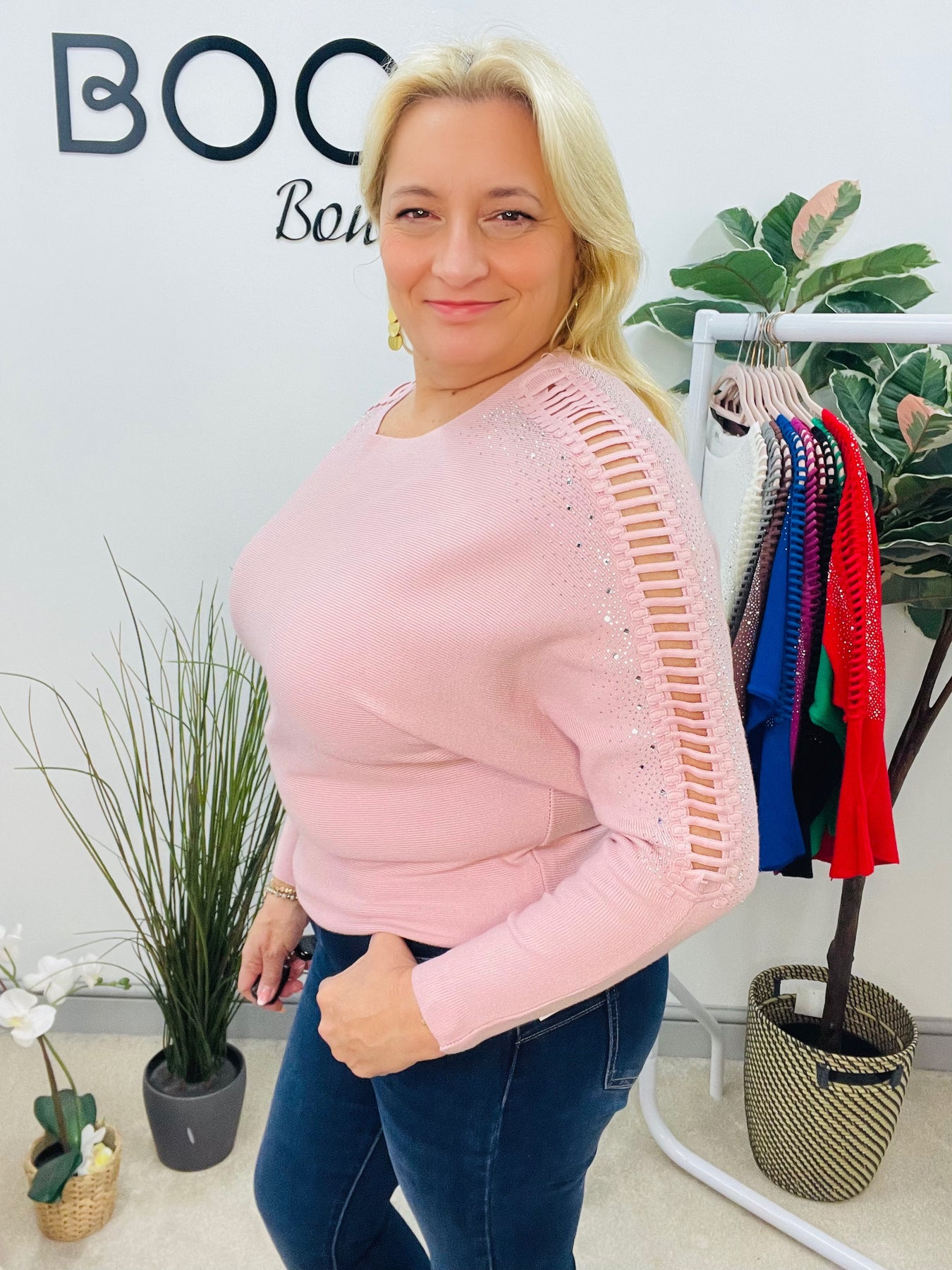 LADIES DIAMANTE BATWING JUMPER MAUVE MAGENTA