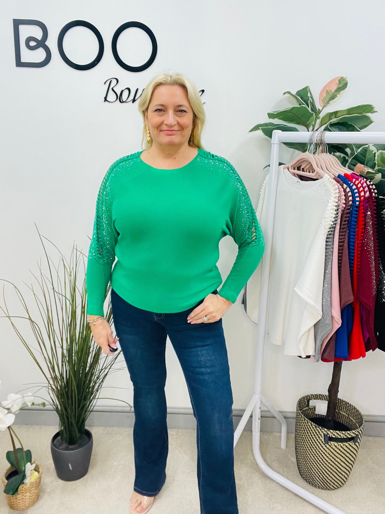 LADIES DIAMANTE BATWING JUMPER GREEN
