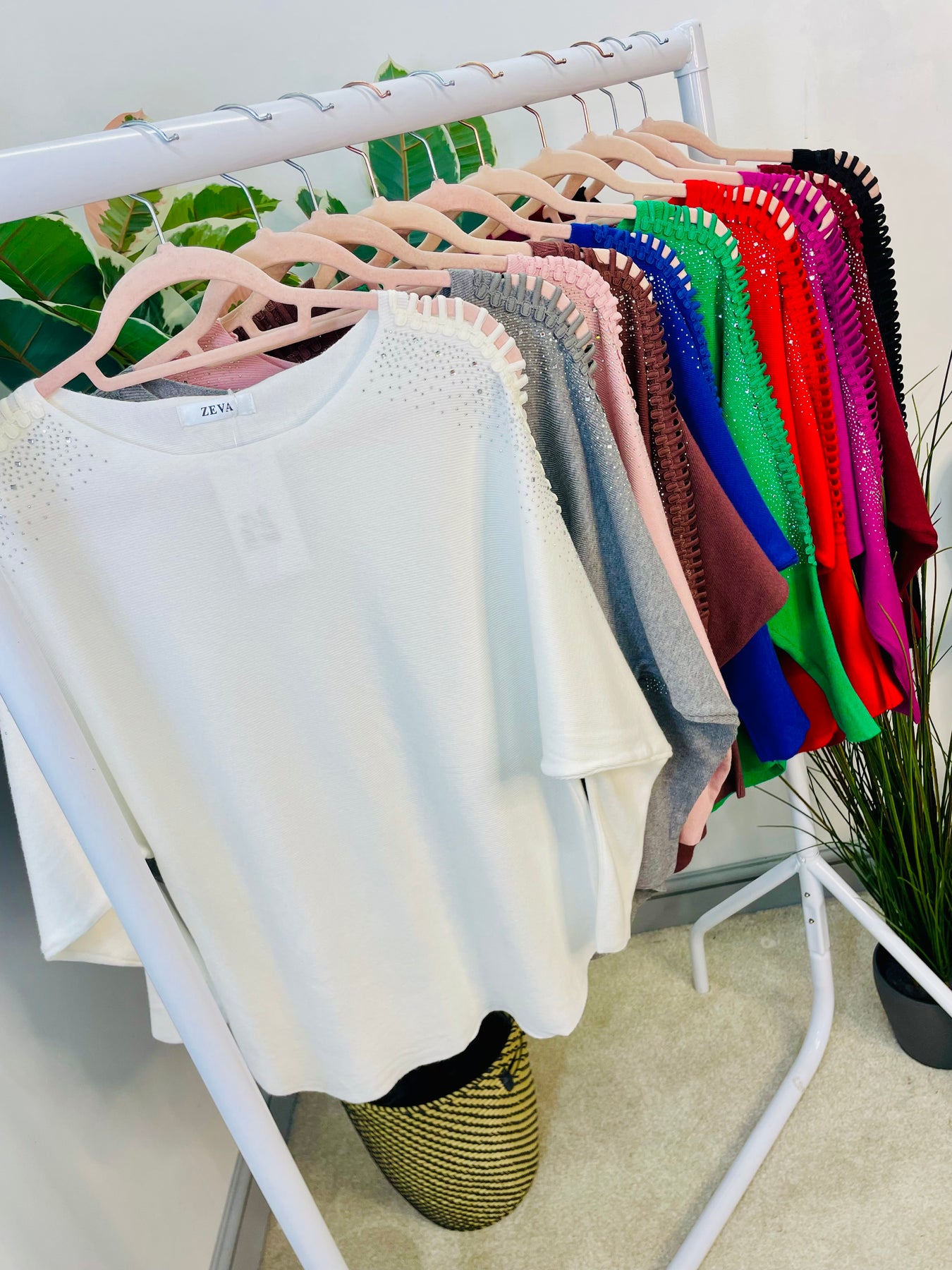 LADIES DIAMANTE BATWING JUMPER WHITE
