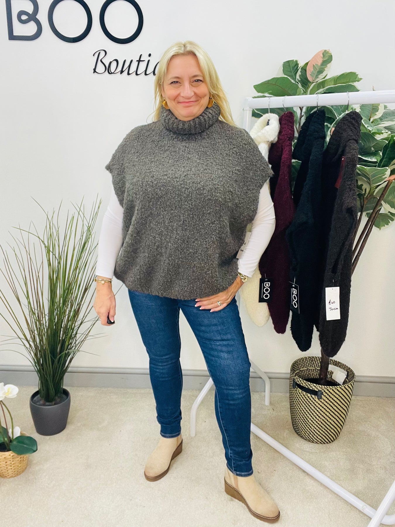 Upgrade your winter wardrobe with the JOYCE jumper. Made of a soft popcorn knit, this sleeveless roll neck jumper comes in 5 beautiful colours. Its one size fits sizes 8 to 18, making it a versatile and stylish addition to any outfit. Stay warm and fashionable this season with JOYCE.