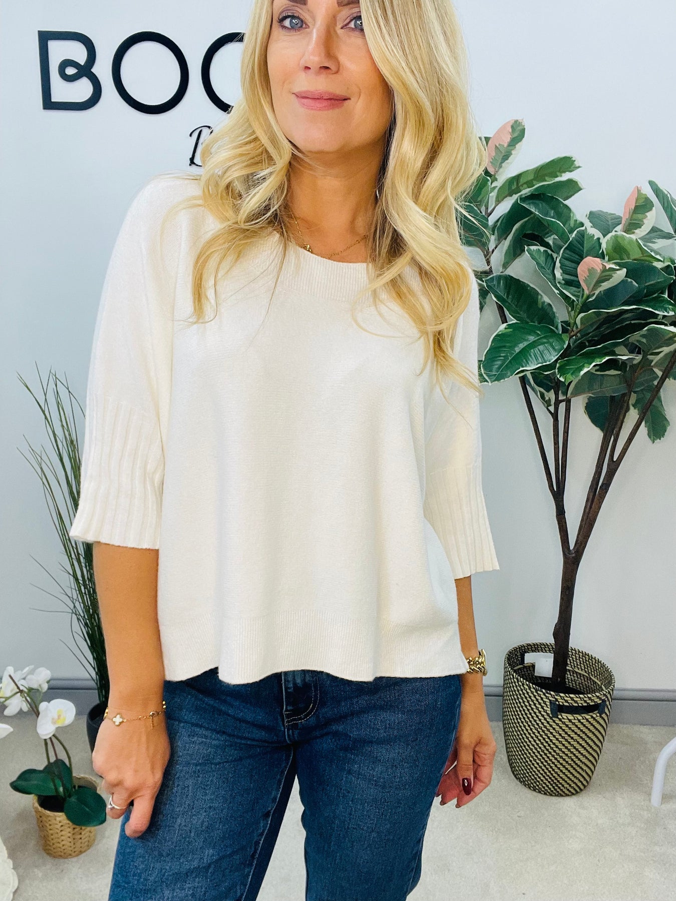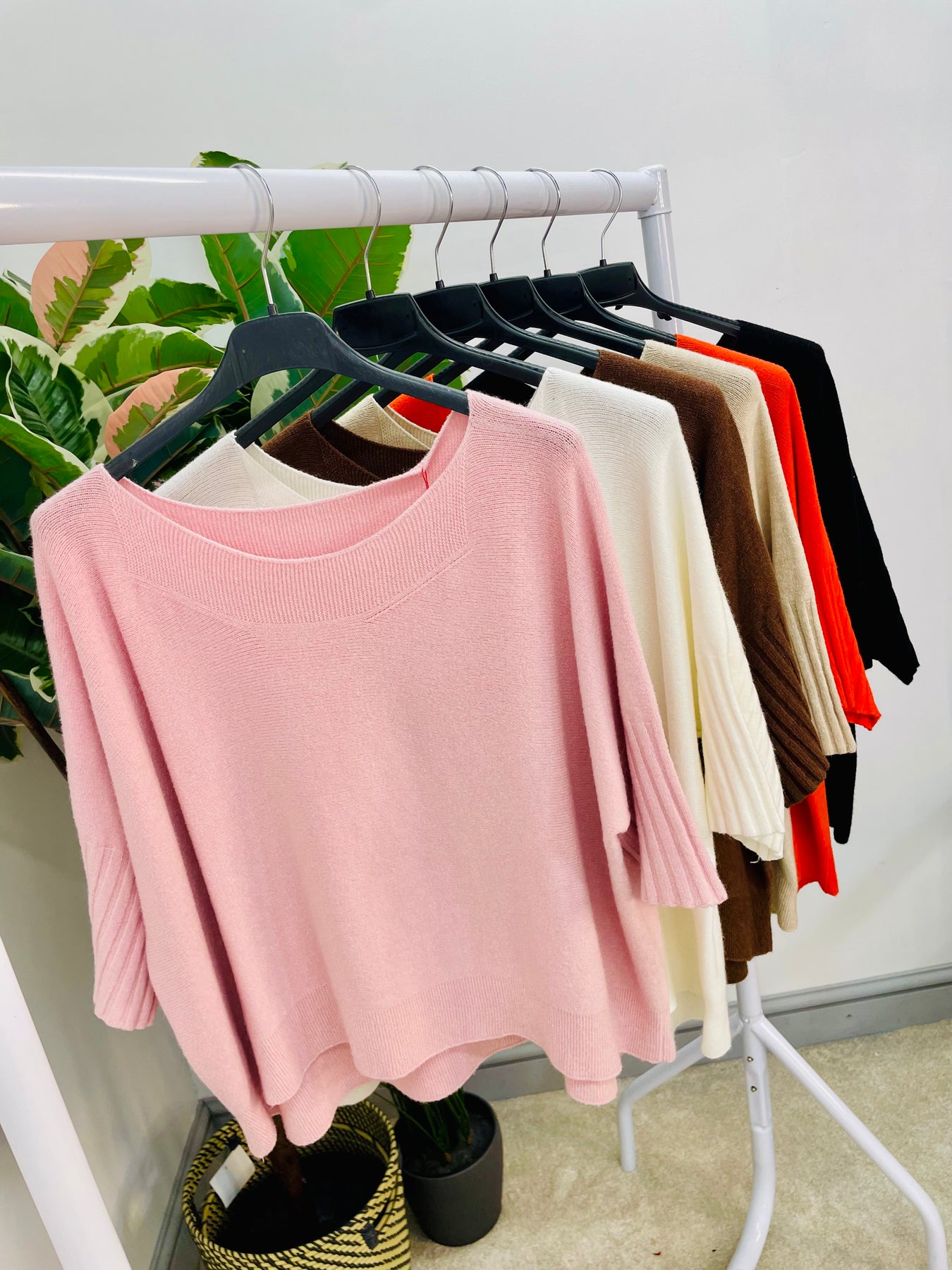 LADIES LOOSE FIT SHORT SLEEVE JUMPER - BROWN, WHITE, ORANGE, PINK, BLACK, BEIGE