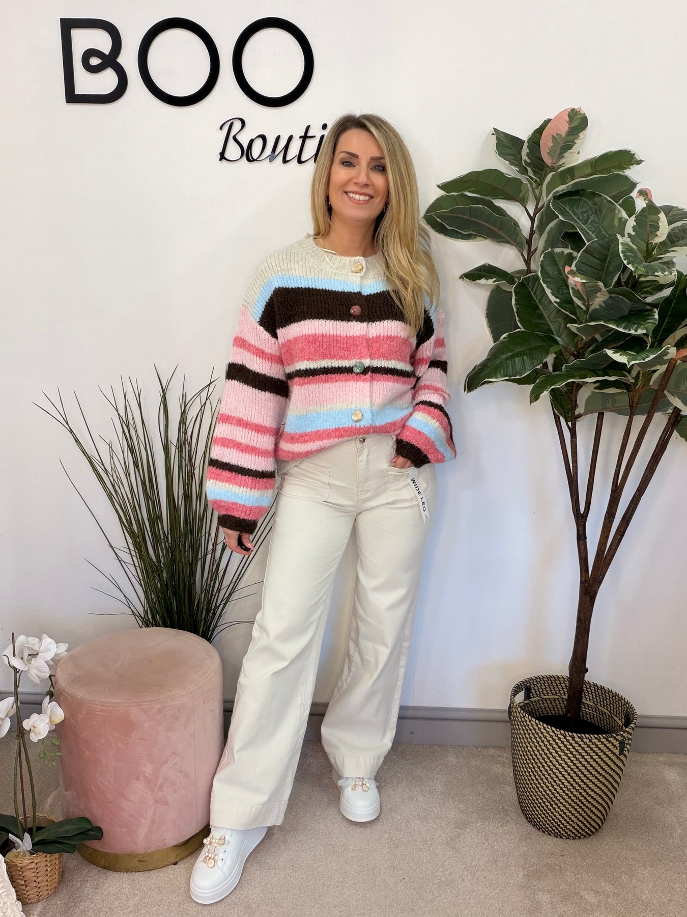 Beautiful stripe soft knit button up cardigan