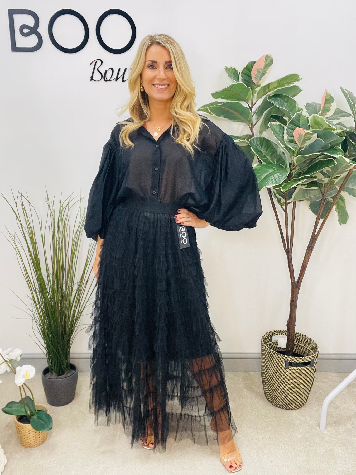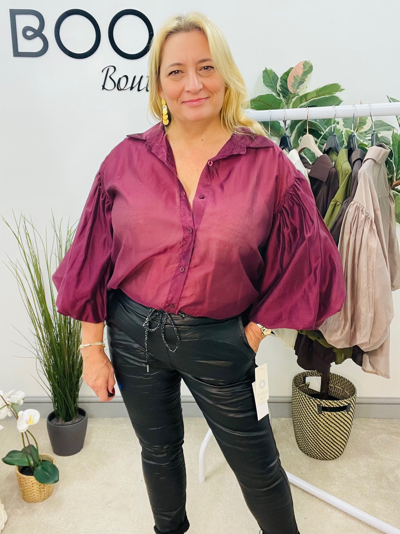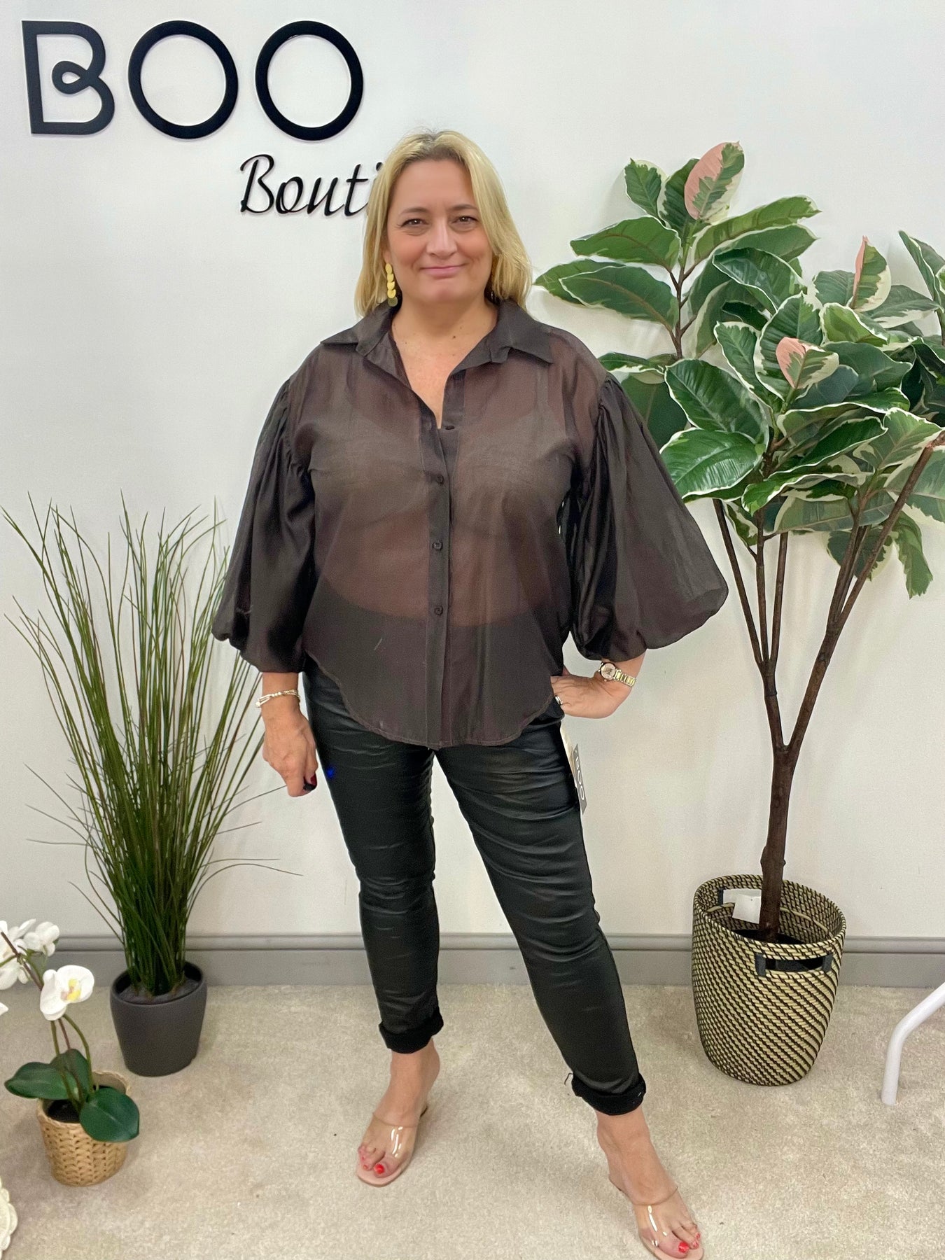 Introducing the POPPY blouse - a versatile piece in 6 beautiful colours. This sheer, button-up blouse features elegant puff sleeves and a comfortable one size fits all design. A must-have for any wardrobe, perfect for sizes 8 to 16.