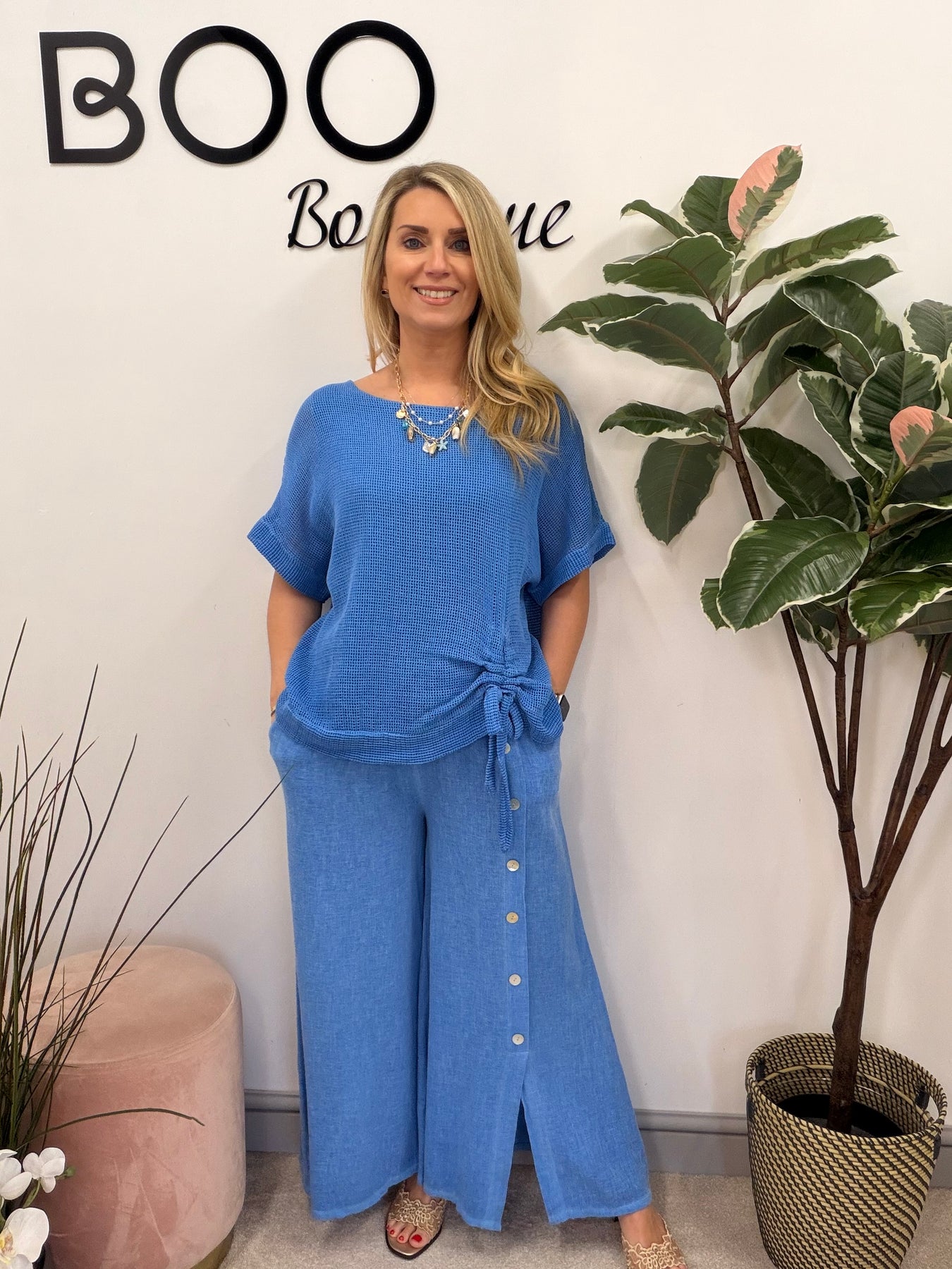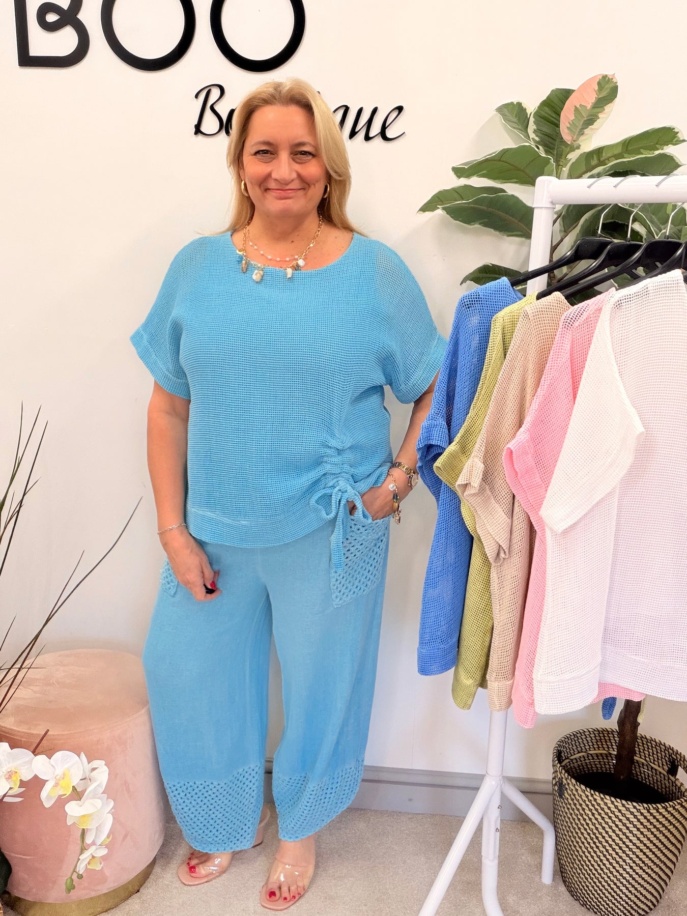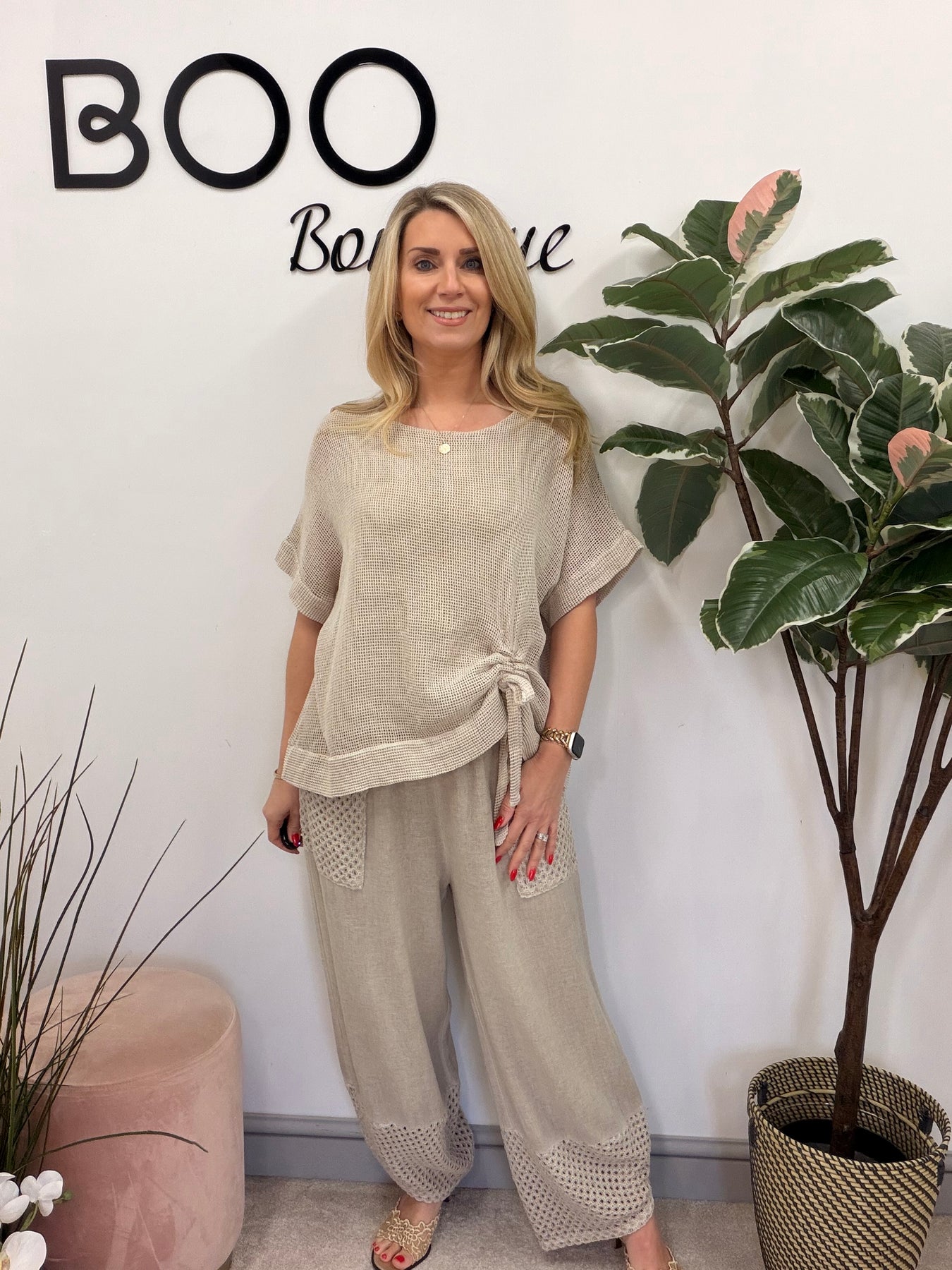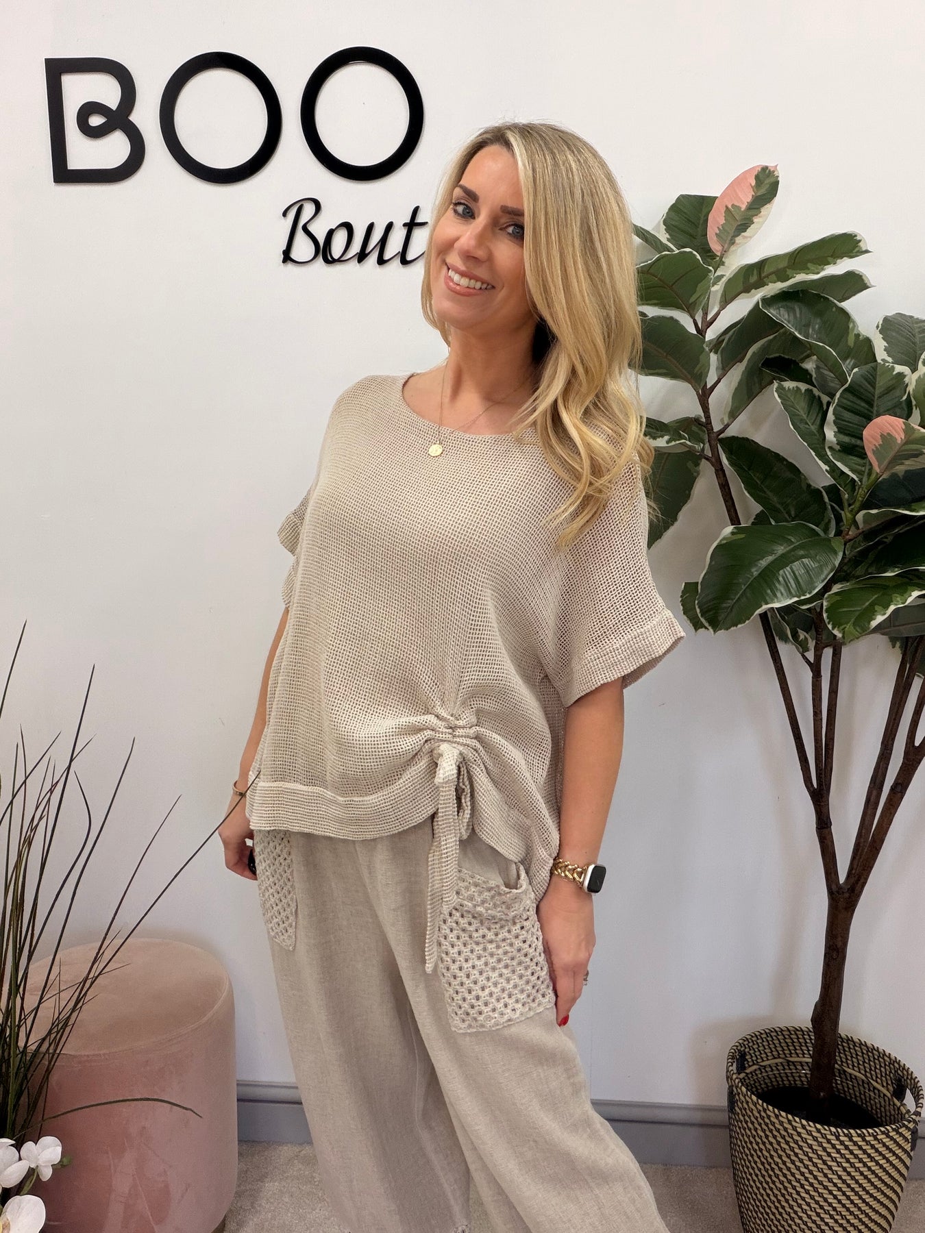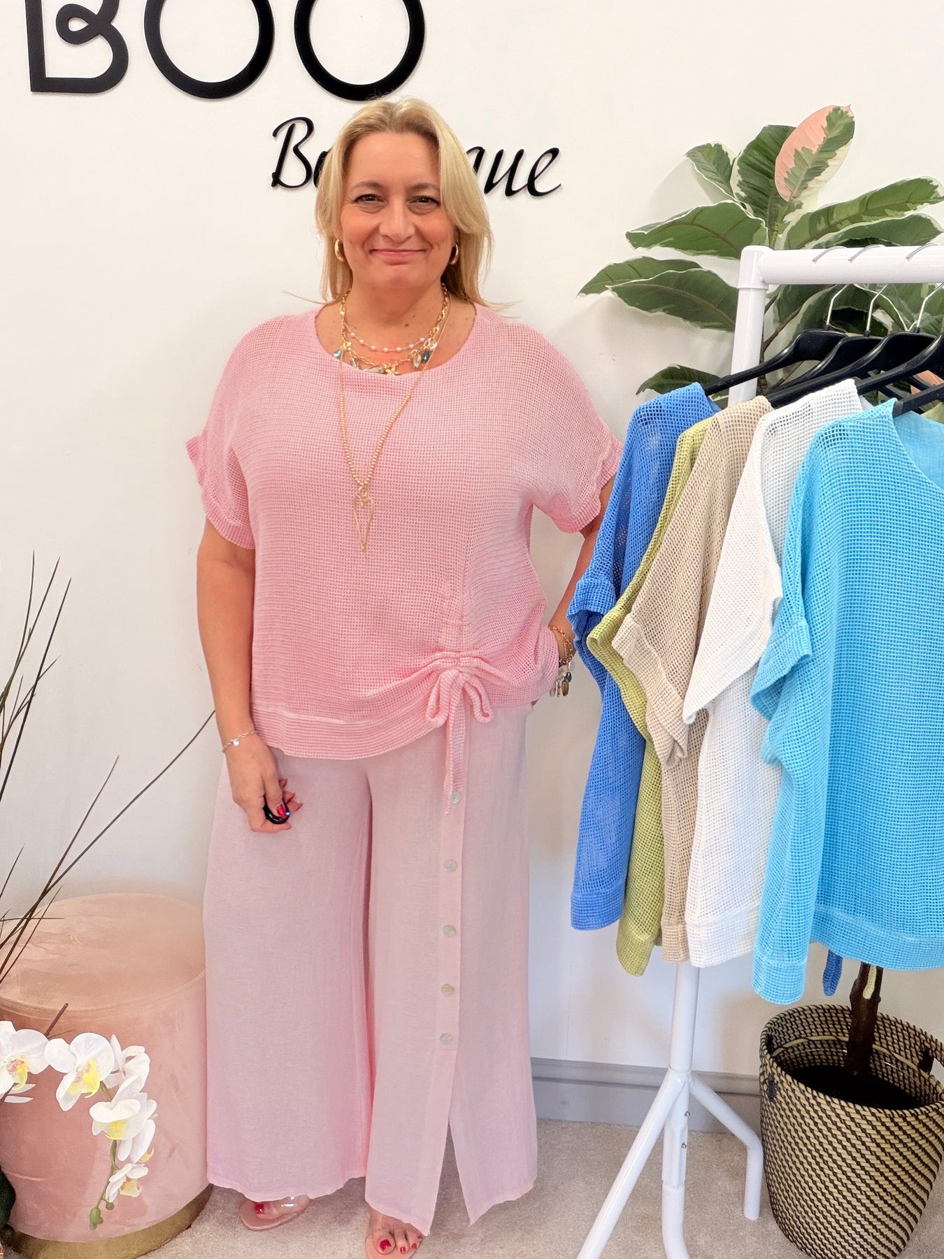 Elevate your summer wardrobe with The SARA teabag linen top! This gorgeous mesh-style top features a chic tie-side detail and a comfortable lined body, perfectly designed to fit sizes 8 to 16. Pair it with the MAD or FLOSS trousers for a stunning coordinated look that exudes effortless style!