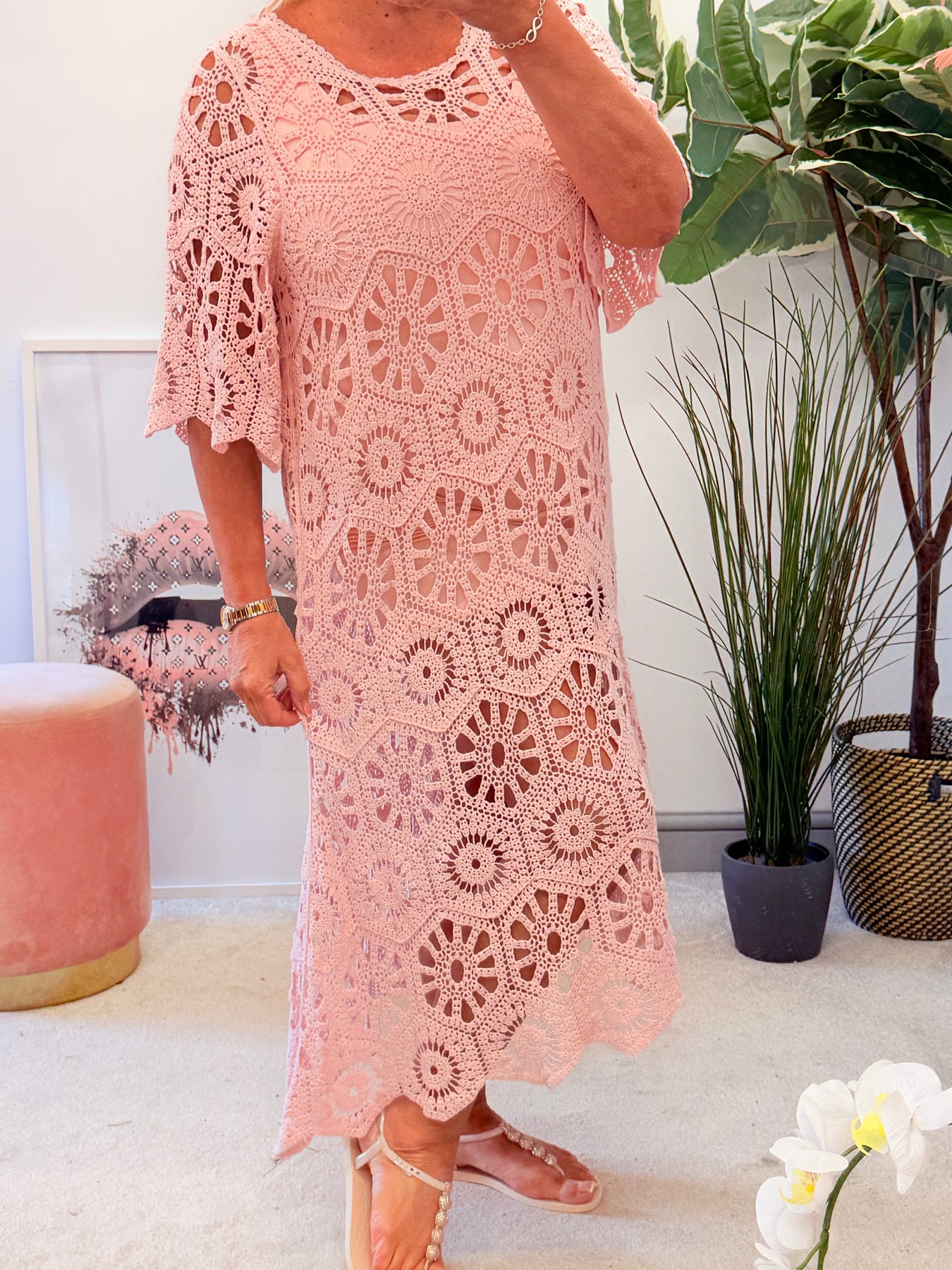 Ladies Fashion Crochet Beach Summer Maxi Dress - Blue, Pink, Fuschia, Orange, White