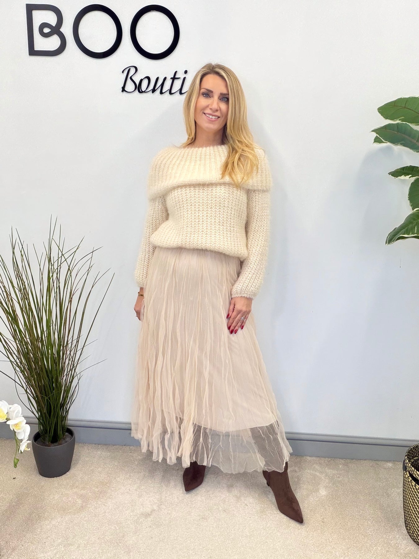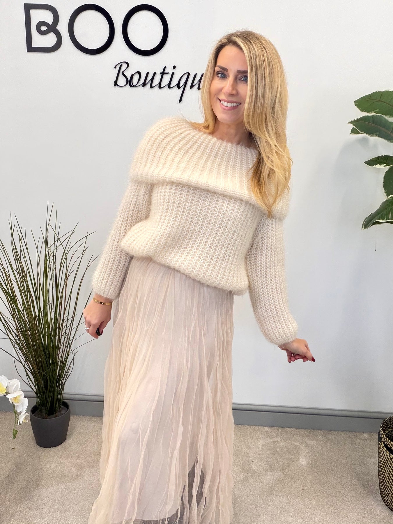 Introducing the EMMA jumper - a soft and fluffy Bardot style jumper. This versatile jumper comes in 6 trendy colours and is one size fits all (sizes 8 to 16). Stay cozy and stylish all season long.