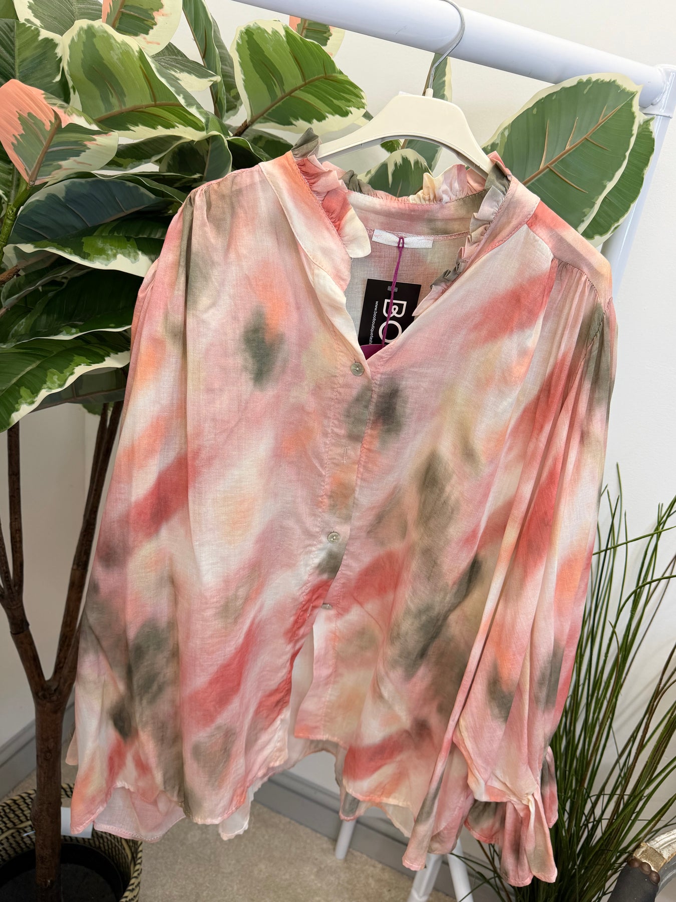 The GLORIA shirt is a versatile addition to any wardrobe. Featuring a beautiful tie dye print, button up front, and frill neckline, it offers both style and comfort. Suitable for sizes 8 to 16/18, it's the perfect choice for any fashion-forward individual. Available in 3 stunning colours.