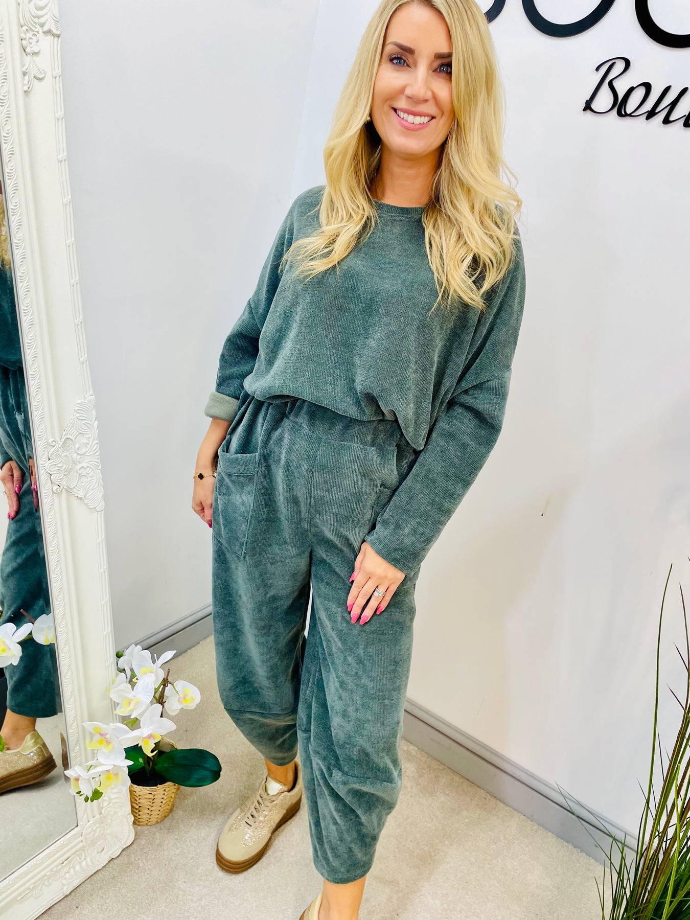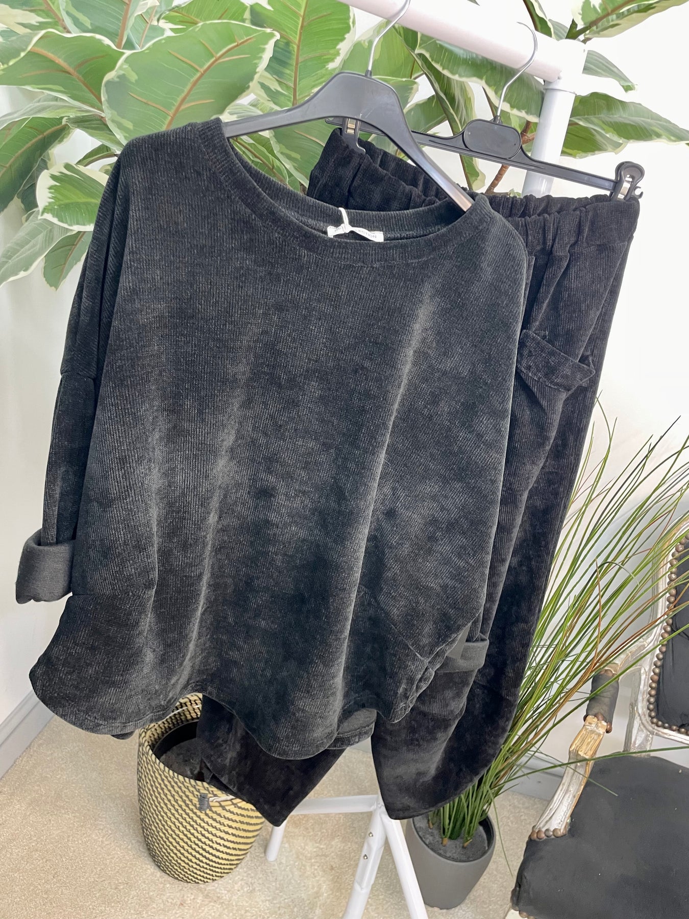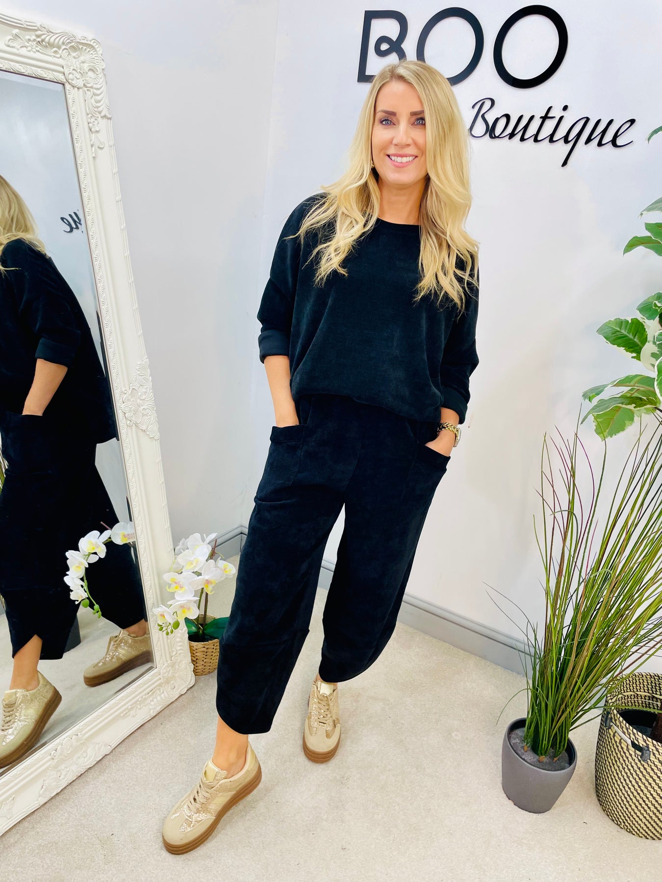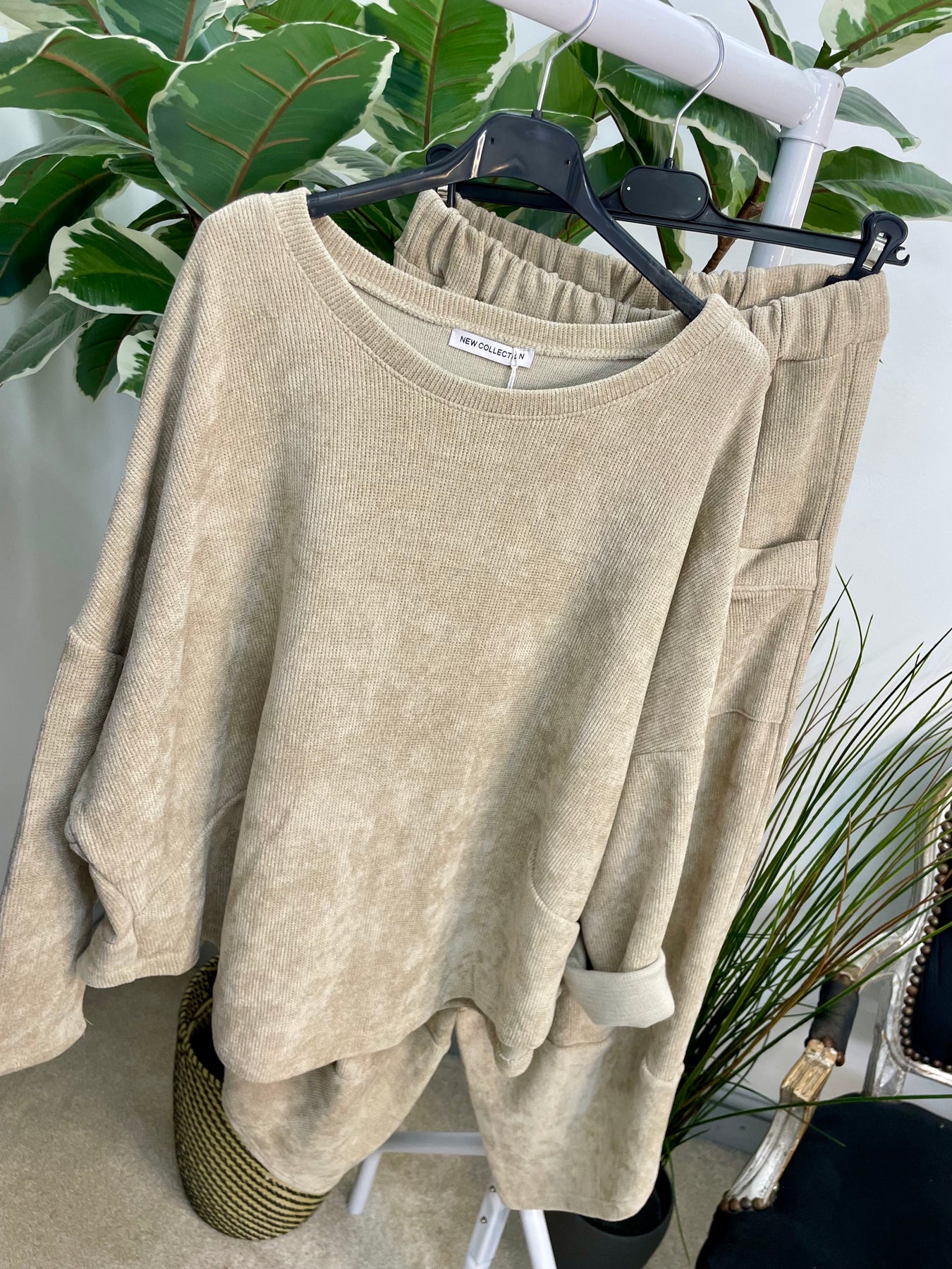 Effortlessly elevate your wardrobe with our KIMMY co ord set. Made from soft cord look material, the loose fit top and balloon leg trousers in 5 stunning colours offer a versatile and comfortable ensemble for sizes 8 to 16. Complete with elasticated waist and front pockets, this set is perfect for any occasion.