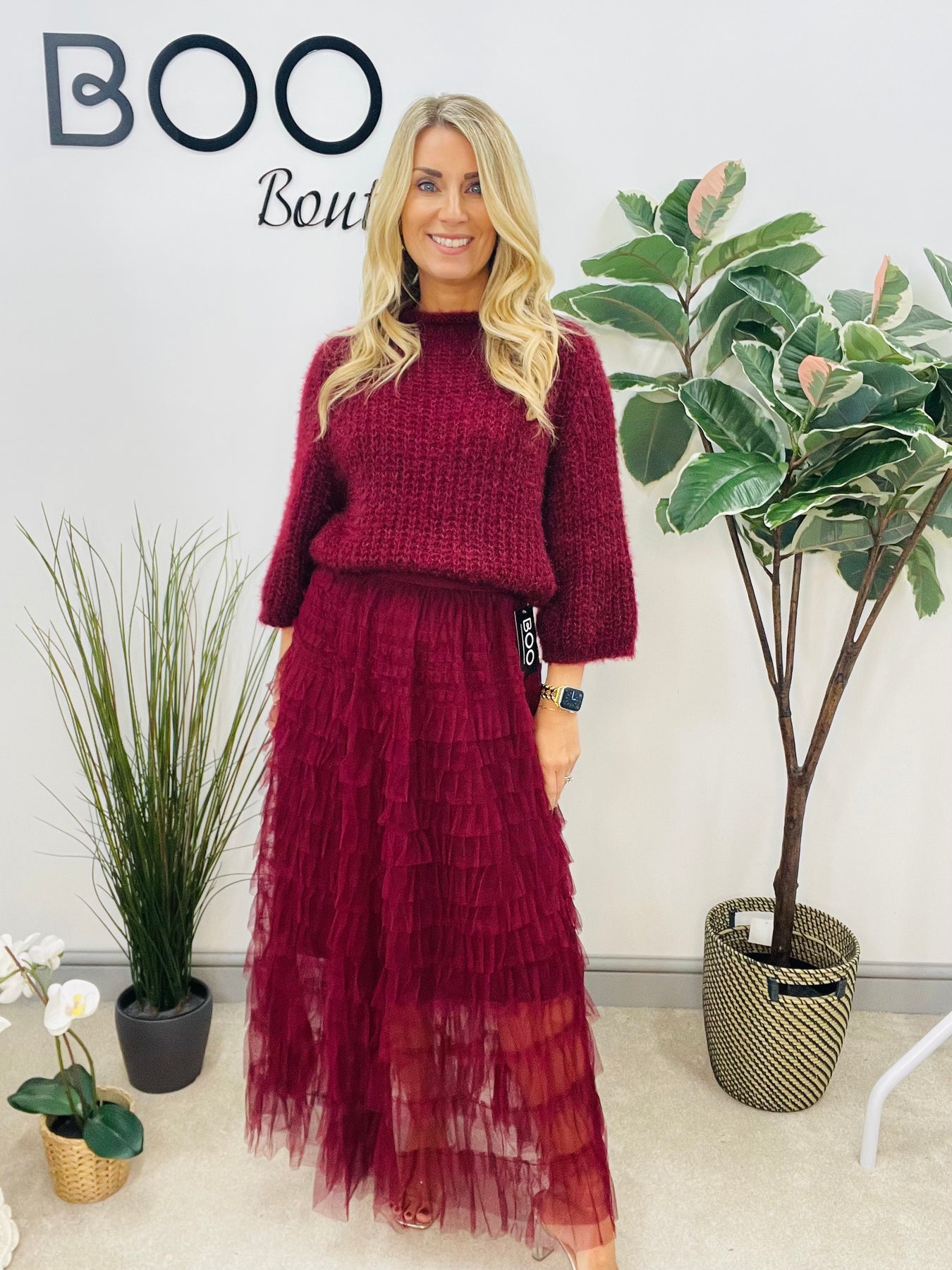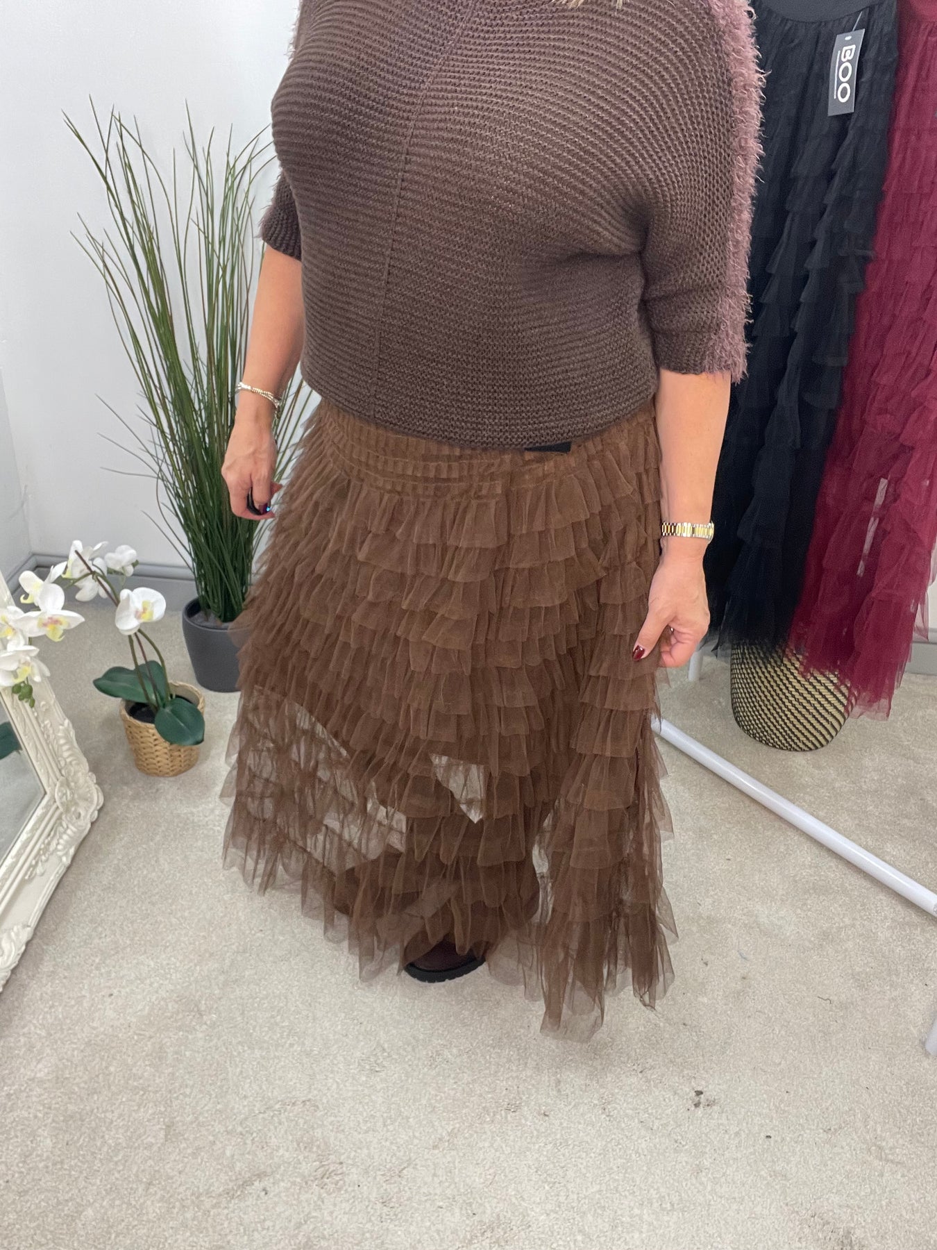 LADIES TULLE MAXI SKIRT - WINE, BROWN & BLACK